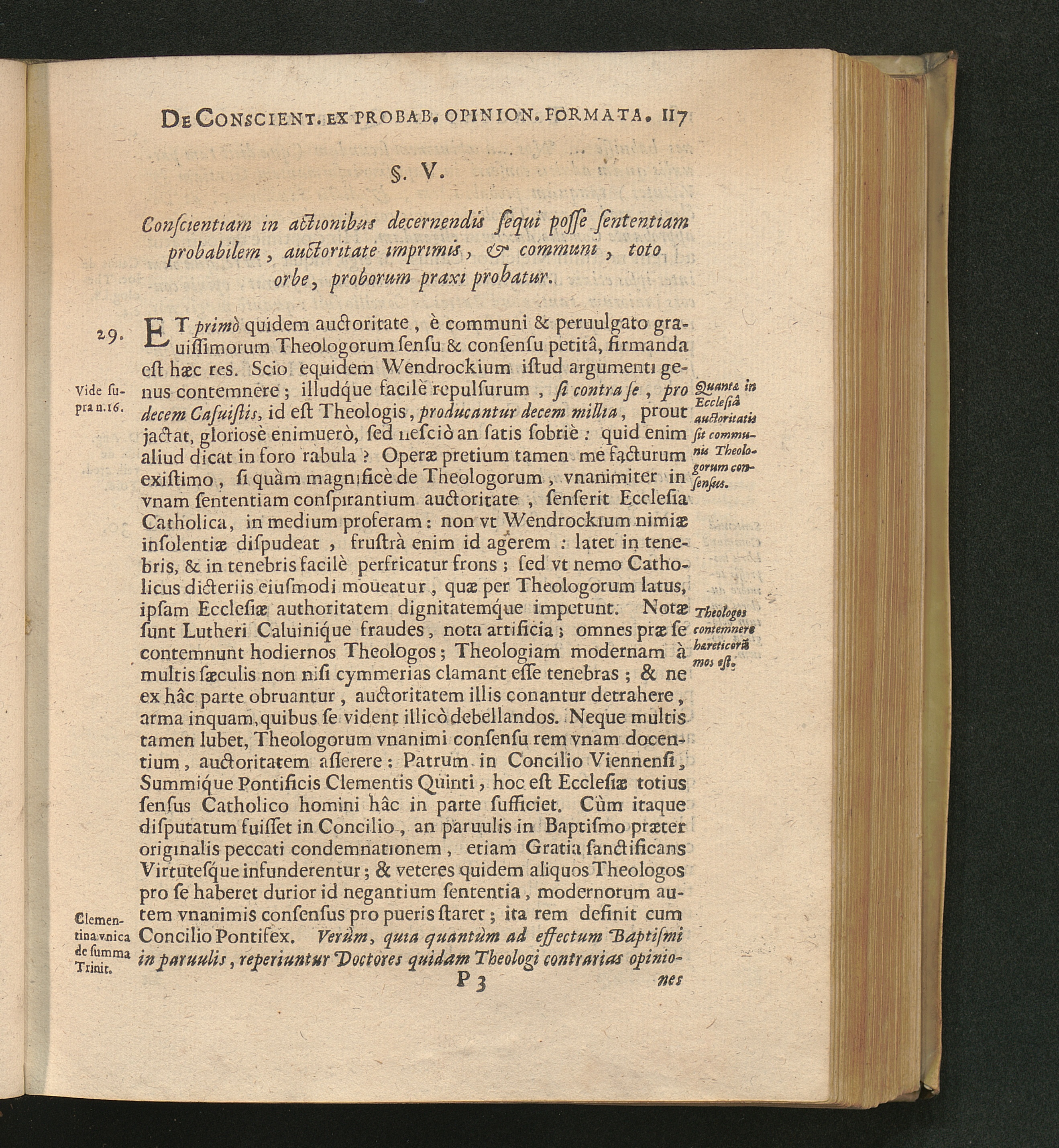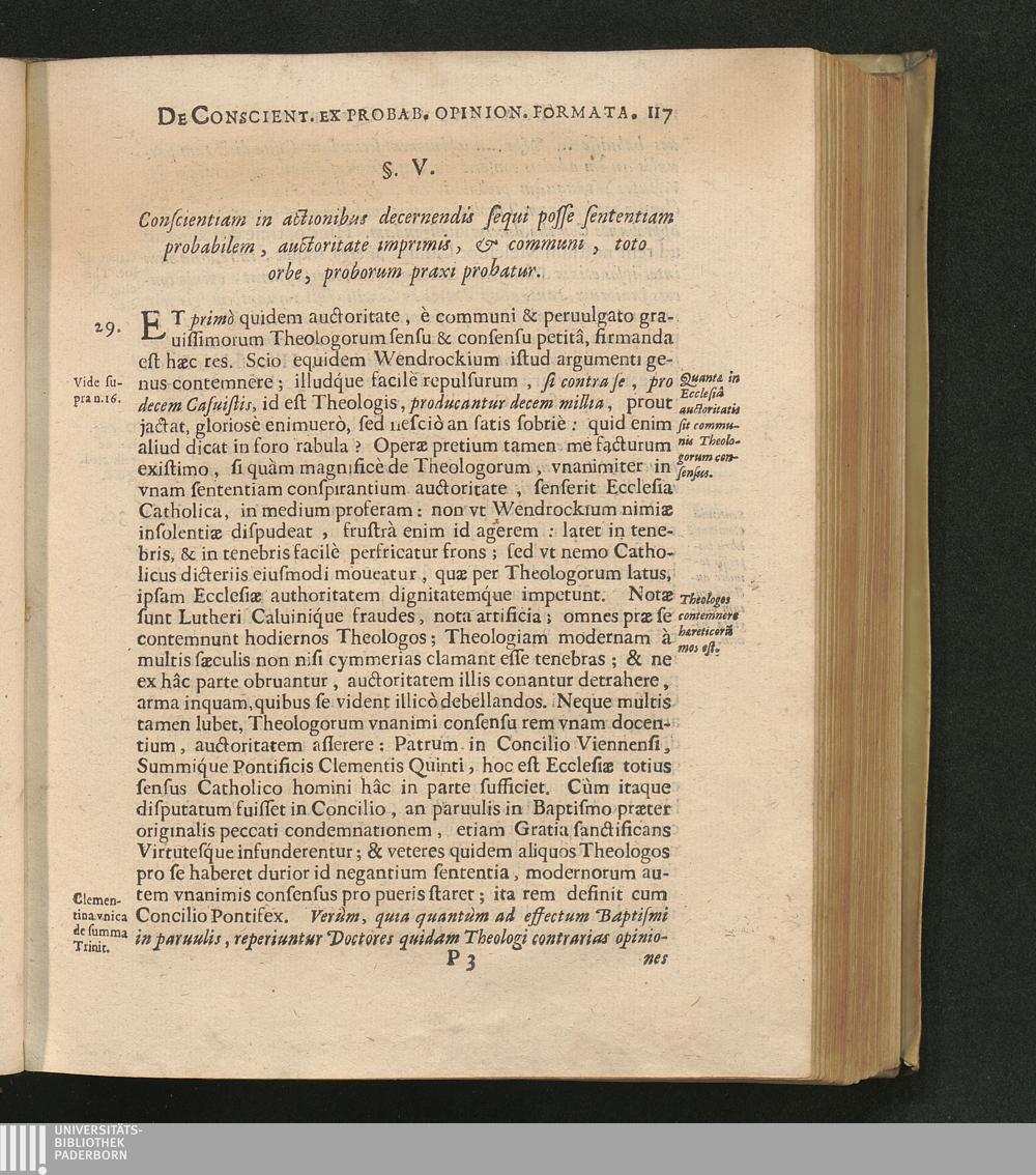 §. V. Conscientiam in actionibus decernendis sequi posse sententiam probabilem, auctoritate,[...]