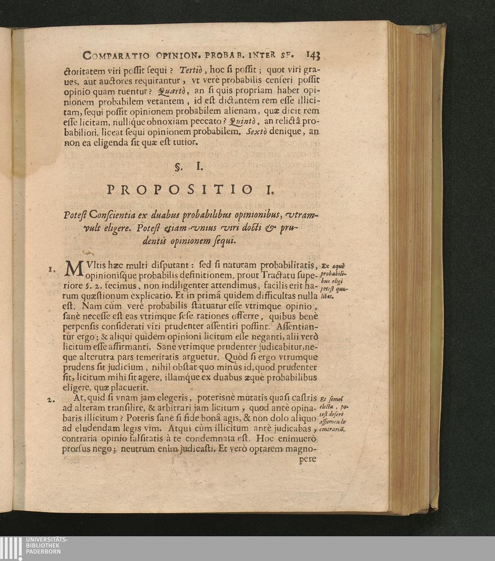 §. I. Propositio prima. Potest Conscientia es duabus probabilibus opinionibus, vtram[...]