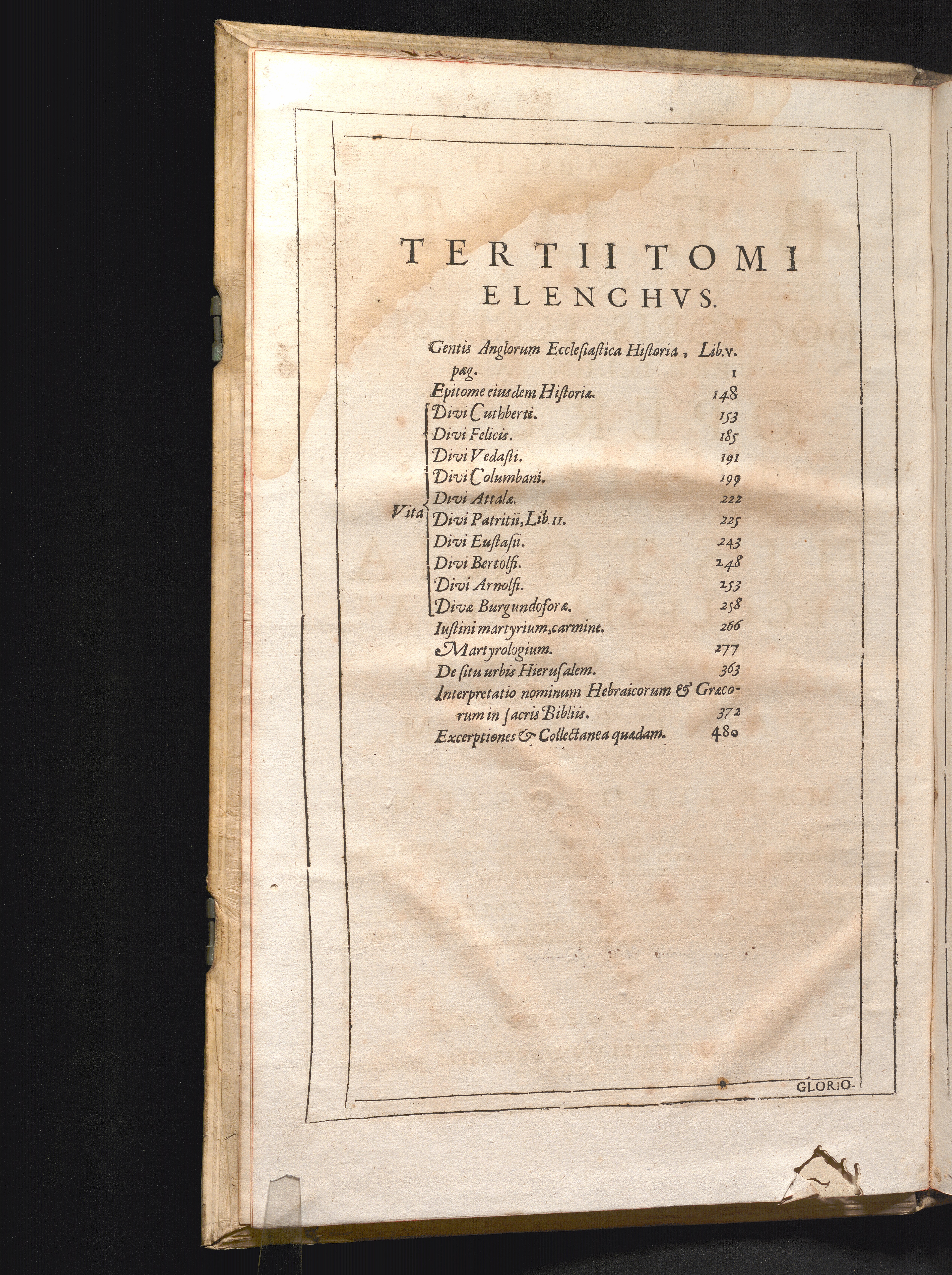 Tomus Tertius (1688) Accedit Tractatvs De Sitv Vrbis Hiervsalem: Dilvcida Nominvm Hebraicorvm Et Græcorvm In Sacris Bibliis Interpretatio; Excerptiones Deniqve Et Collectanea Qvaedam Scitv Dignissima, Hac Postrema Editione Diligenter Recognita Et Sedvlo Correcta Sive Eivsdem Historia Ecclesiastica Anglorum, Vitæ Aliquot Sanctorvm, Et Martyrologium