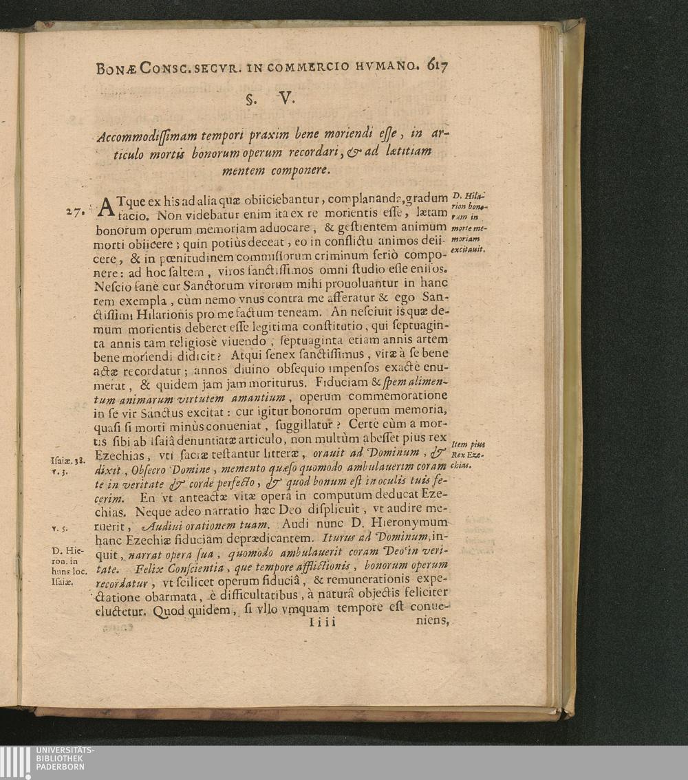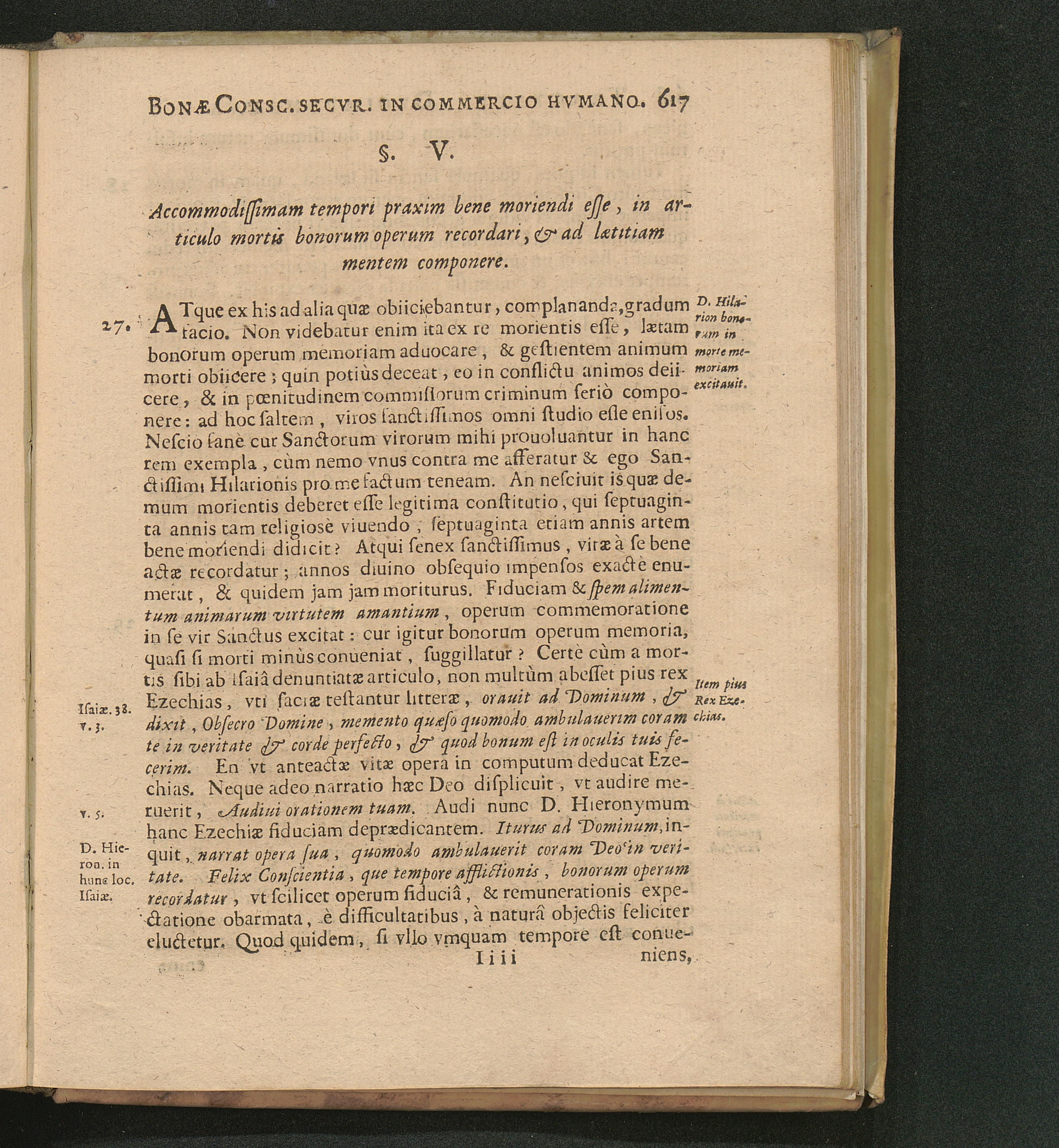 §. V. Accommodissimam tempori praxim benè moriendi, in articulo mortis esse, bonorum[...]