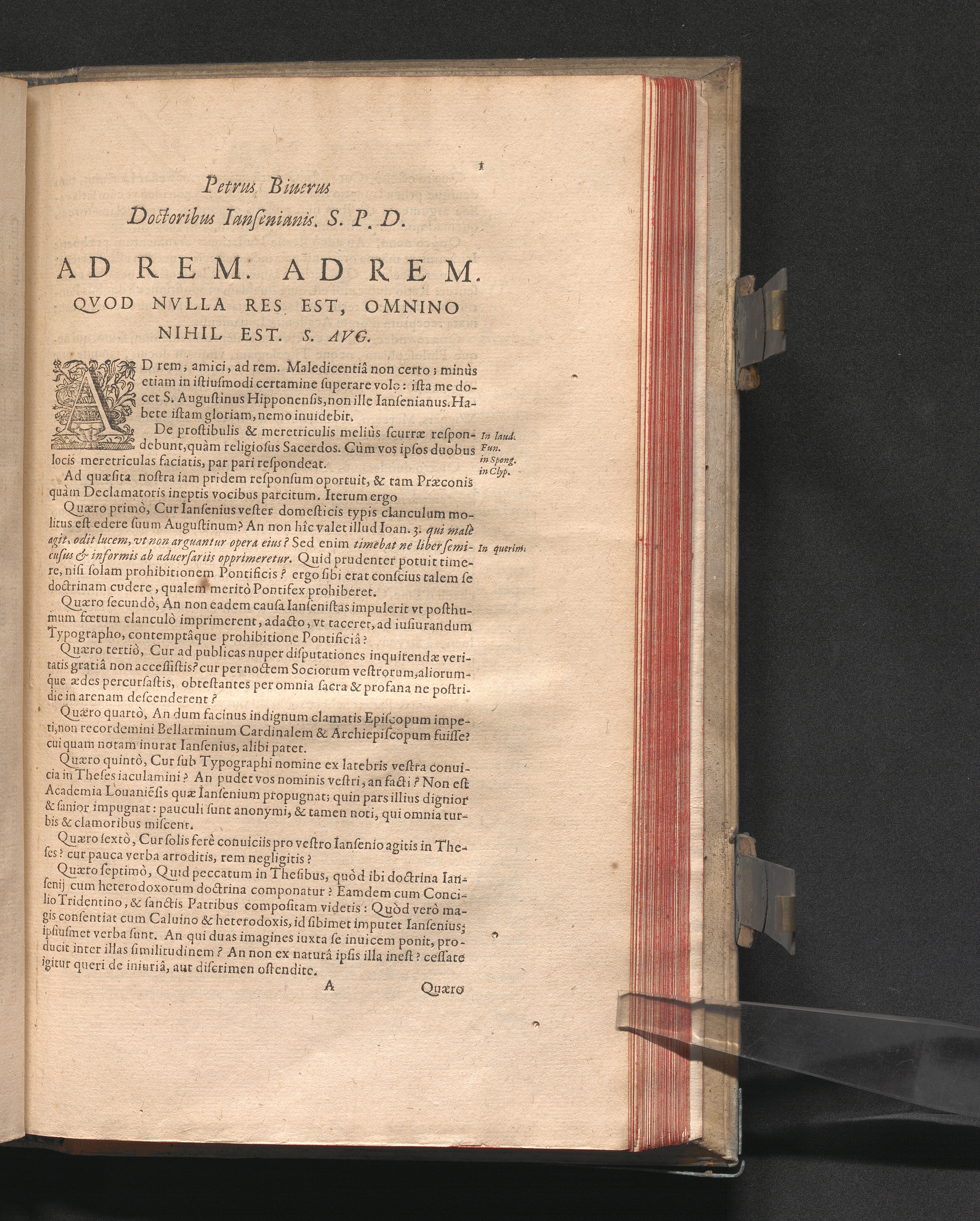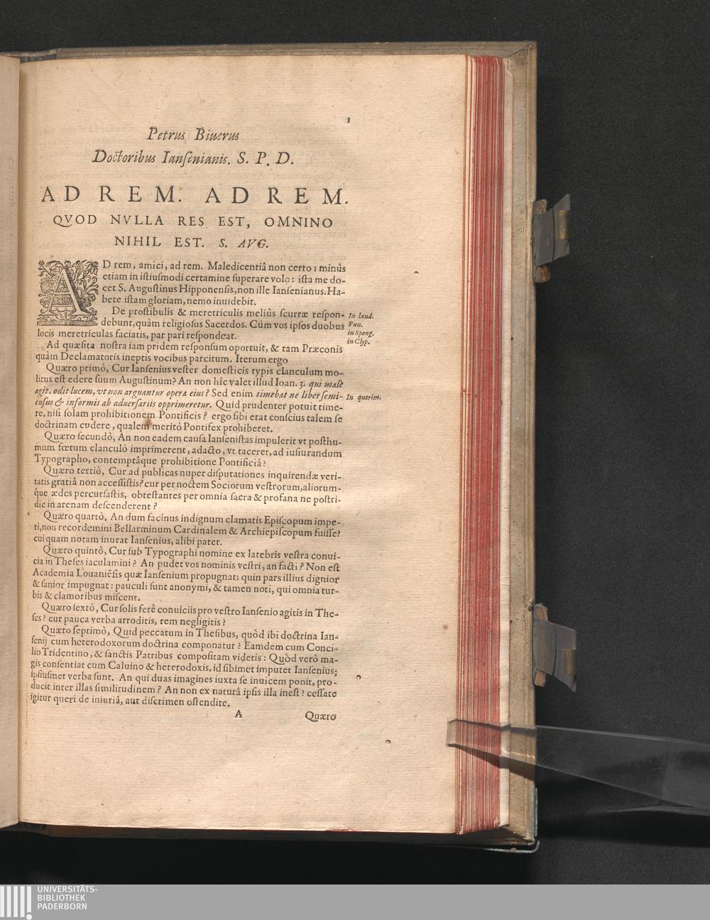 Petrus Biuerus Doctoribus Iansenianis. S. P. D. : Ad Rem. Ad Rem. Qvod Nvlla Res Est, Omnino Nihil Est. S. Avg.