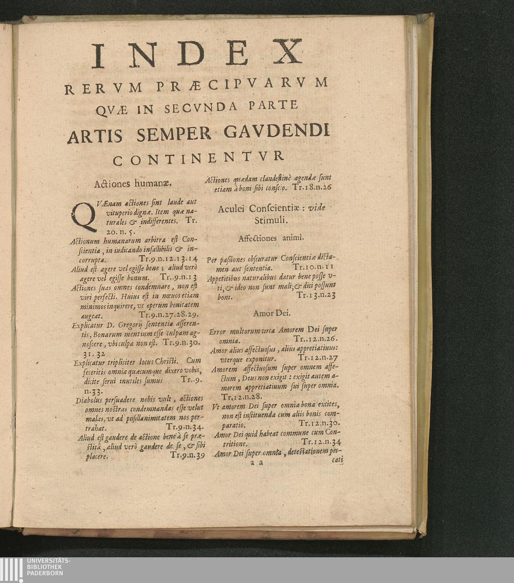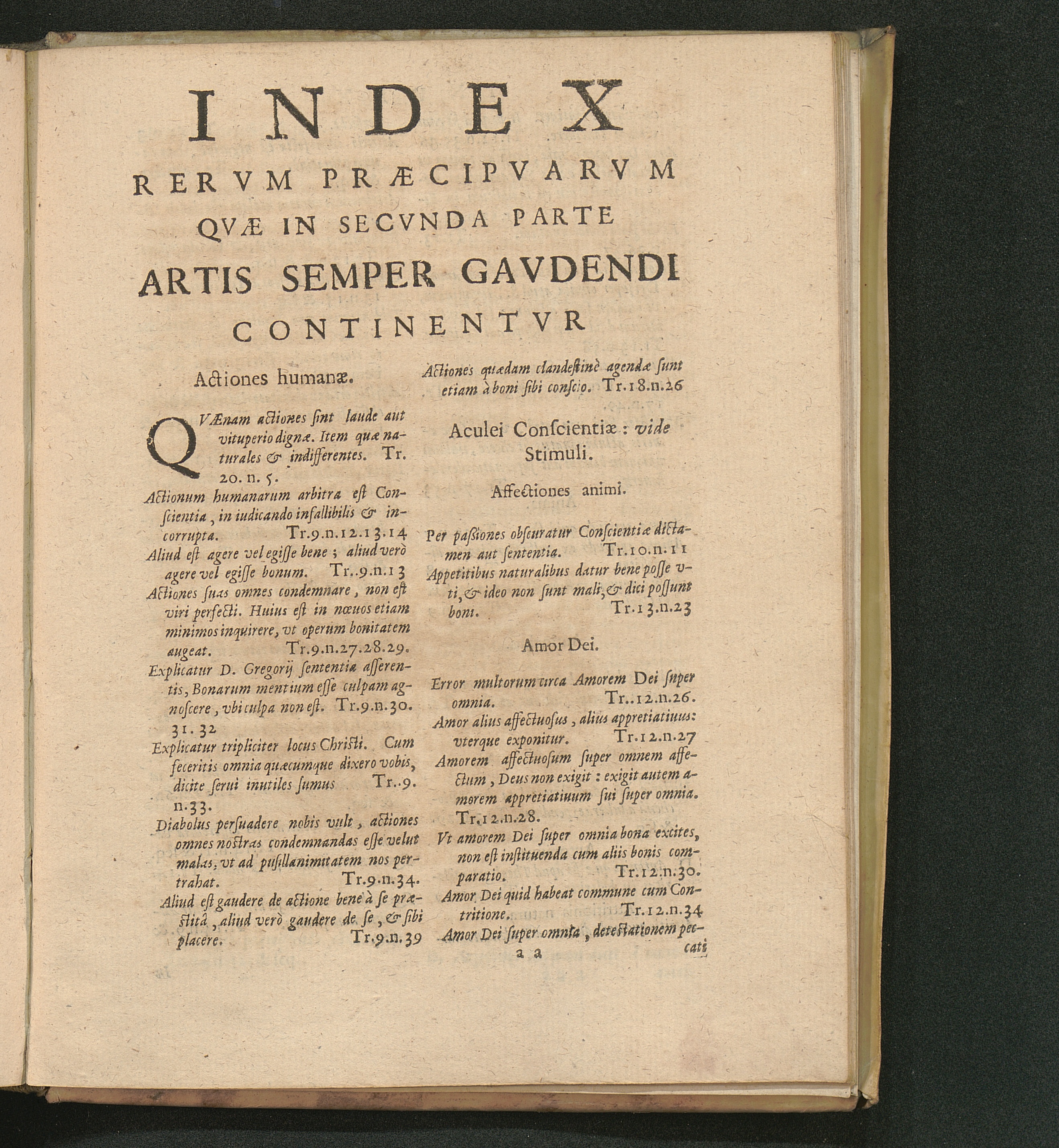 Index Rervm Praecipvarvm Qvae In Secvnda Parte Artis Semper Gavdendi Continentvr
