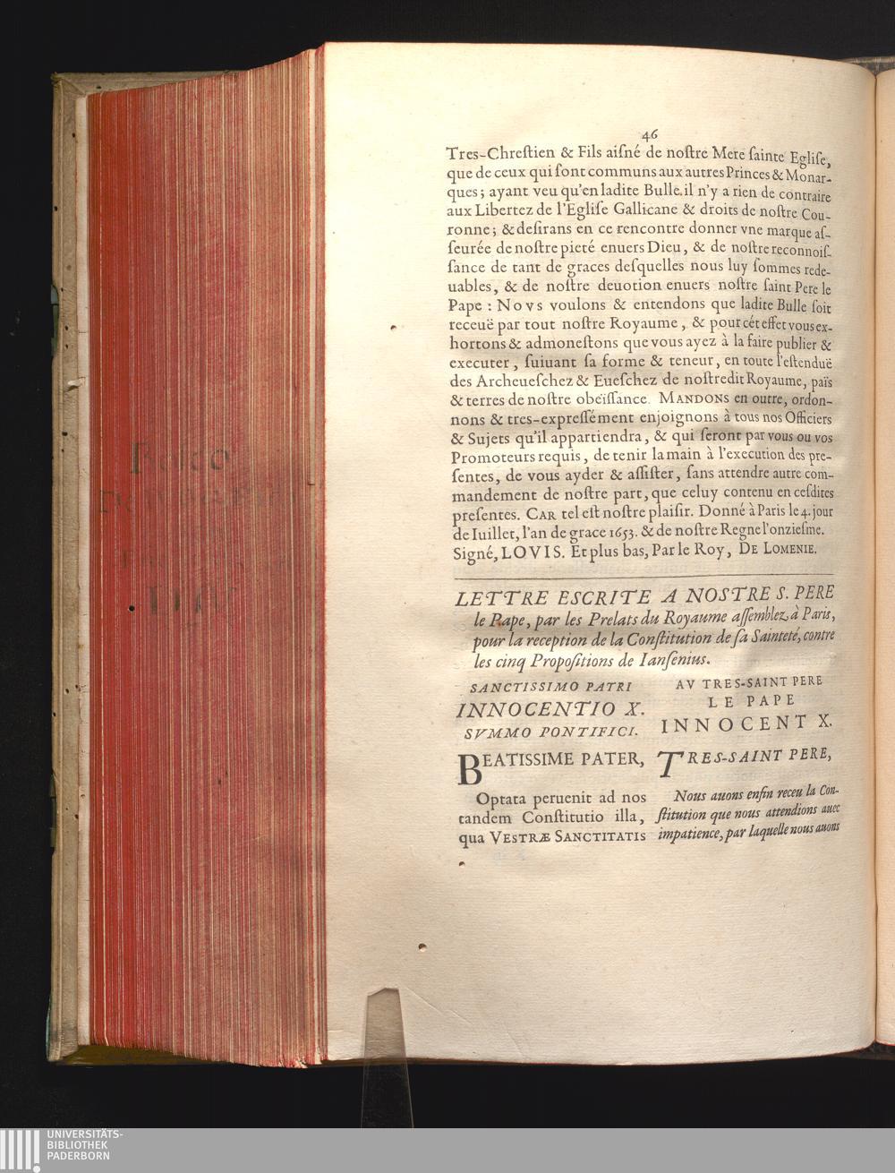 Relation Des Deliberations Dv Clergé De France, Svr La Constitvtion, Et Svr le Bref de N.S.P. le Pape Innocent X. Par Laqvelle Sont Declarées & definies cinq Propositions en matiere de Foy : Auec le Brefs de sa Sainteté, au Roy, & aux Archeuesques & Euesques de ce Royaume