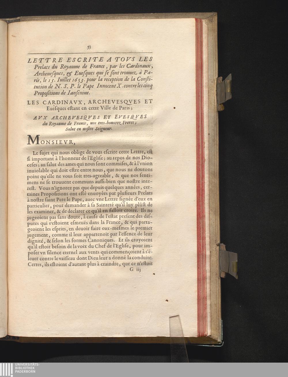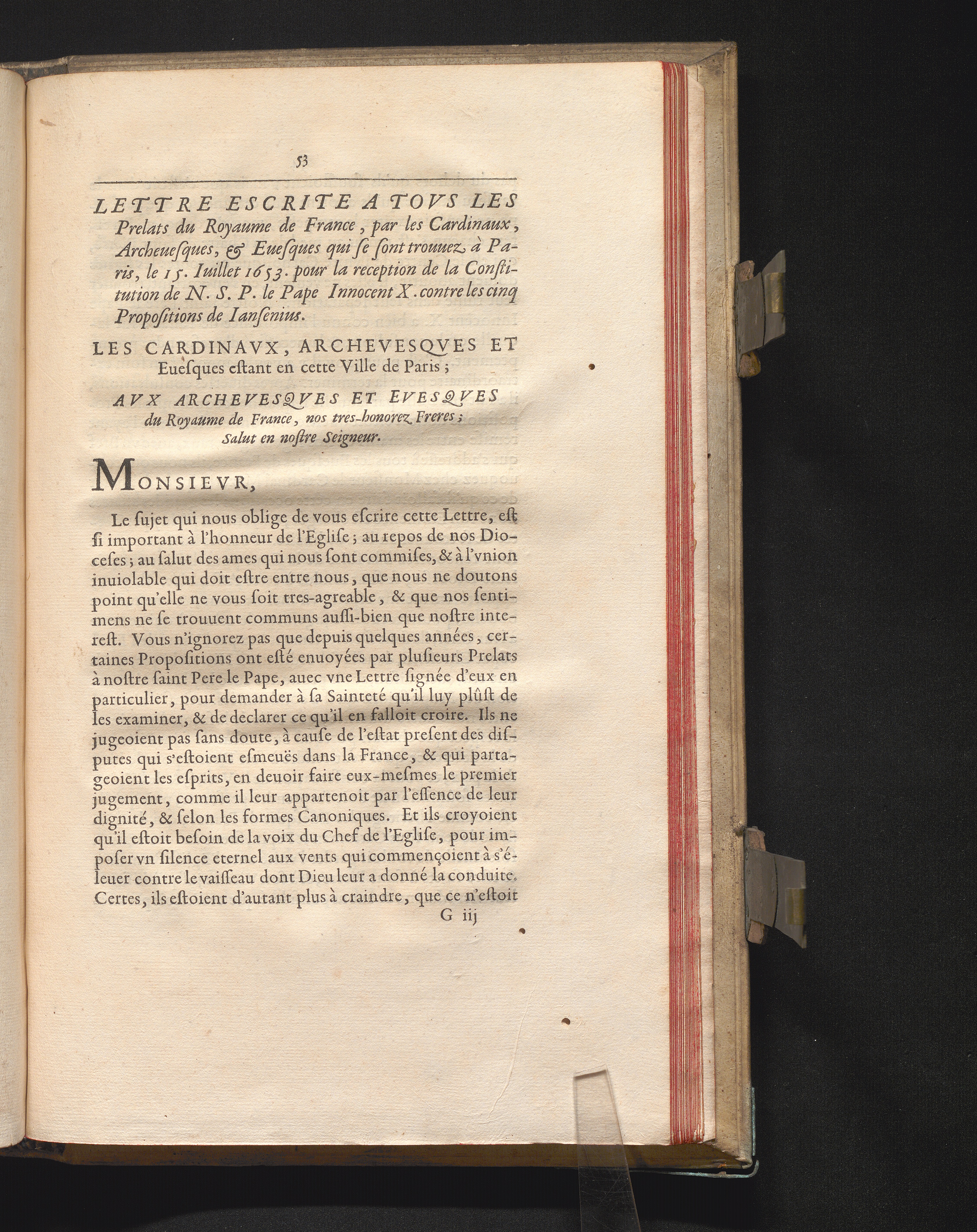 Relation Des Deliberations Dv Clergé De France, Svr La Constitvtion, Et Svr le Bref de N.S.P. le Pape Innocent X. Par Laqvelle Sont Declarées & definies cinq Propositions en matiere de Foy : Auec le Brefs de sa Sainteté, au Roy, & aux Archeuesques & Euesques de ce Royaume