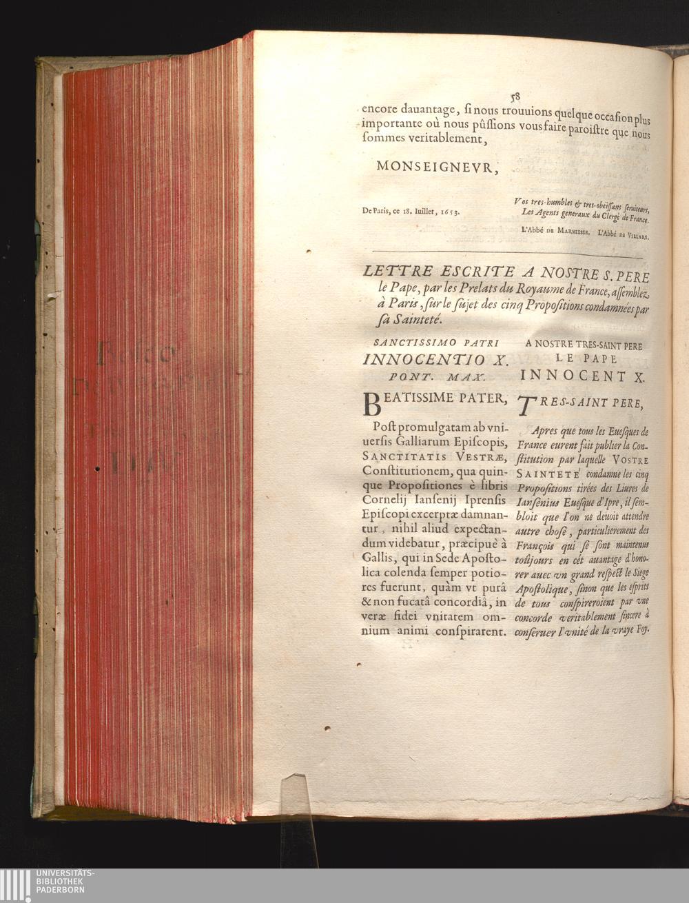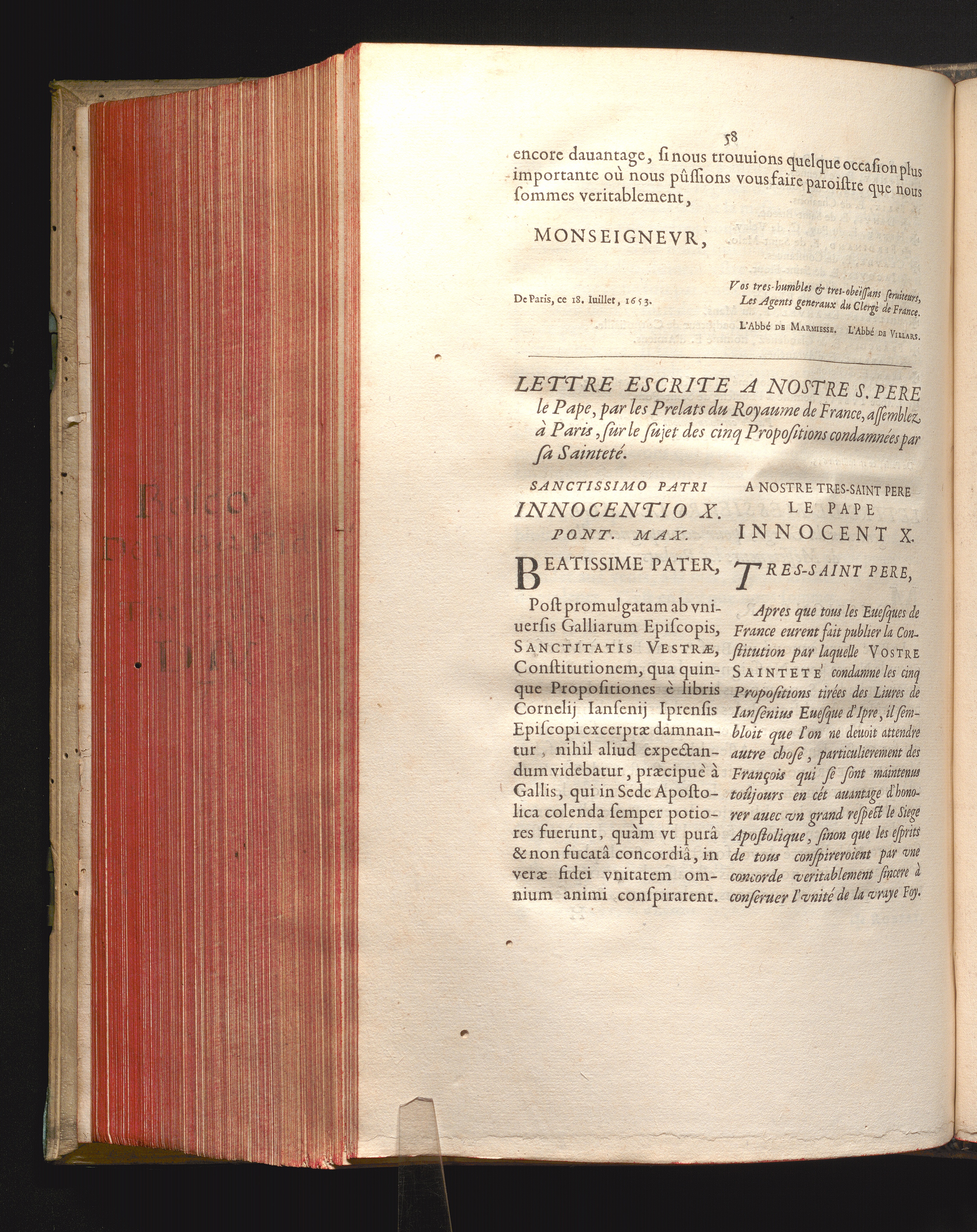 Relation Des Deliberations Dv Clergé De France, Svr La Constitvtion, Et Svr le Bref de N.S.P. le Pape Innocent X. Par Laqvelle Sont Declarées & definies cinq Propositions en matiere de Foy : Auec le Brefs de sa Sainteté, au Roy, & aux Archeuesques & Euesques de ce Royaume