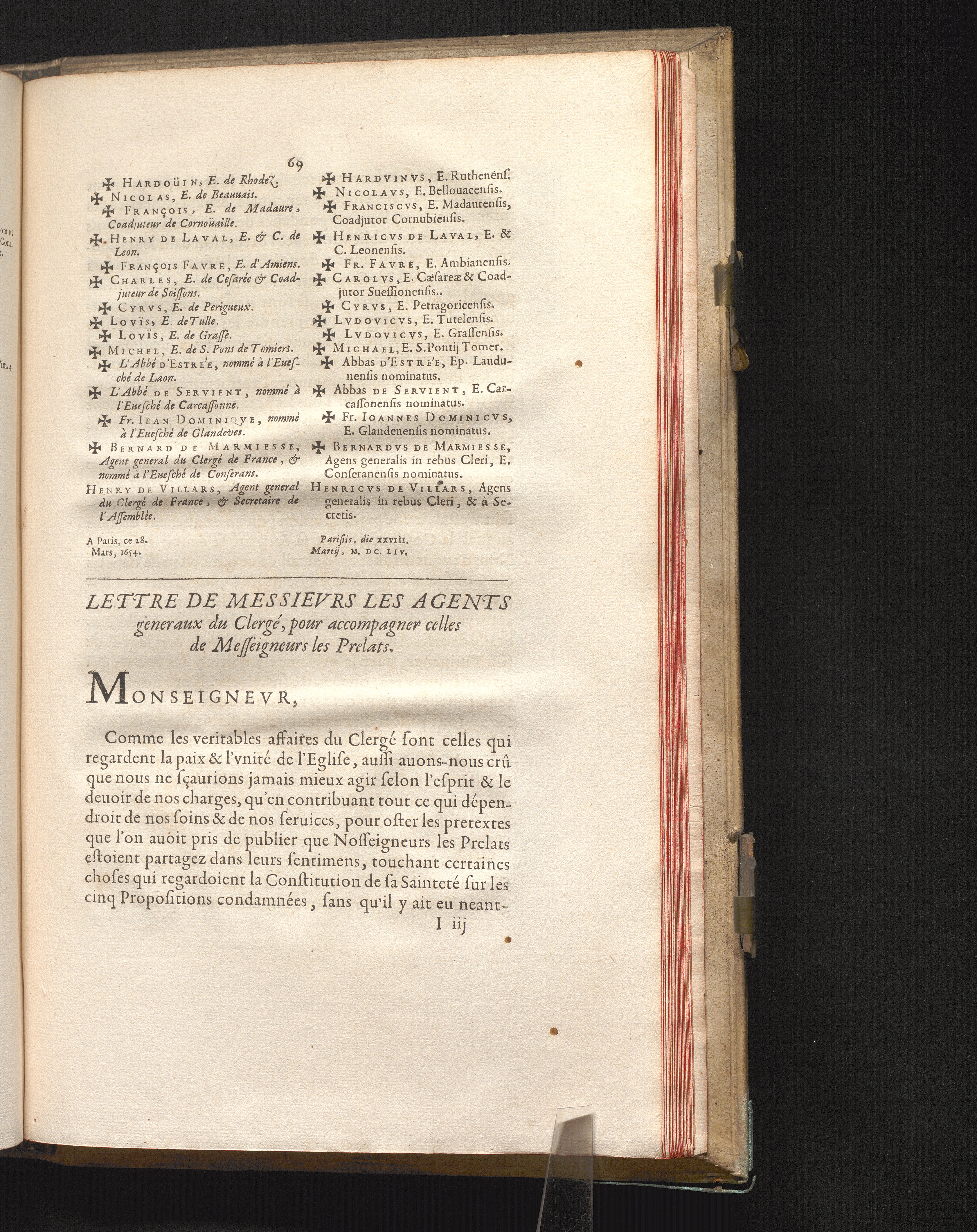 Relation Des Deliberations Dv Clergé De France, Svr La Constitvtion, Et Svr le Bref de N.S.P. le Pape Innocent X. Par Laqvelle Sont Declarées & definies cinq Propositions en matiere de Foy : Auec le Brefs de sa Sainteté, au Roy, & aux Archeuesques & Euesques de ce Royaume