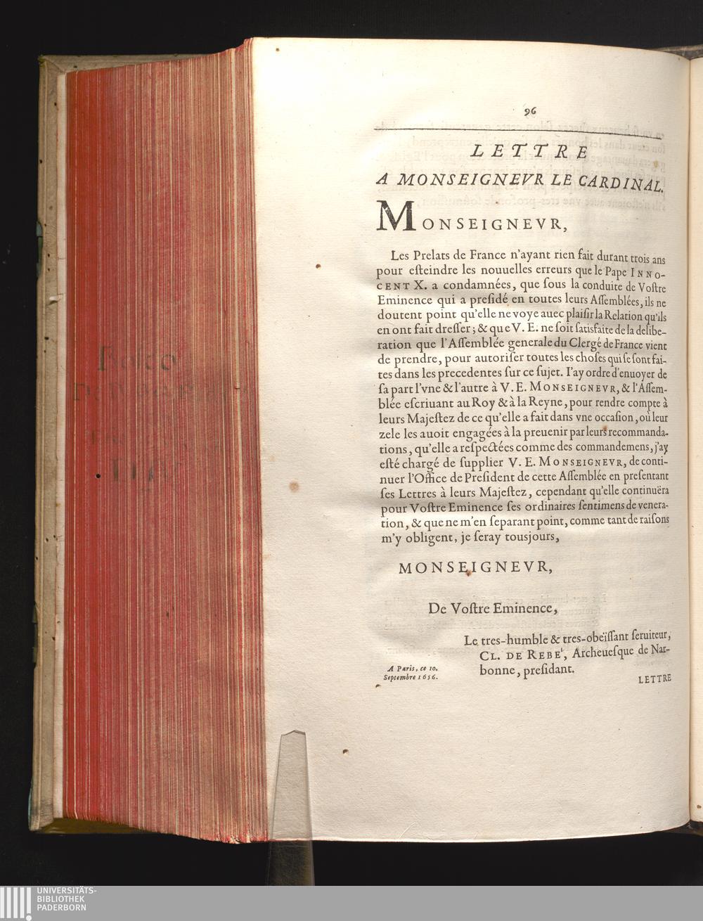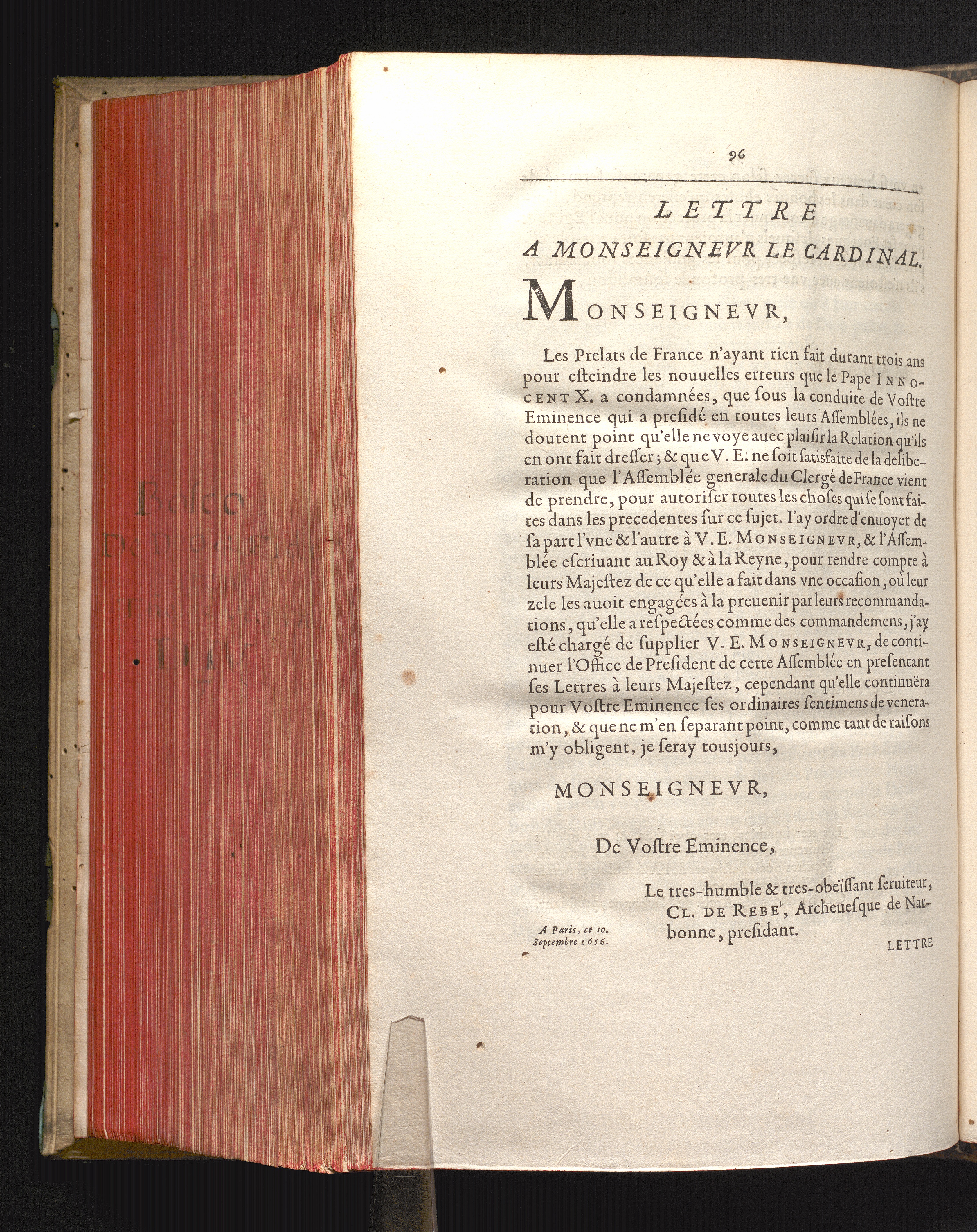 Relation Des Deliberations Dv Clergé De France, Svr La Constitvtion, Et Svr le Bref de N.S.P. le Pape Innocent X. Par Laqvelle Sont Declarées & definies cinq Propositions en matiere de Foy : Auec le Brefs de sa Sainteté, au Roy, & aux Archeuesques & Euesques de ce Royaume