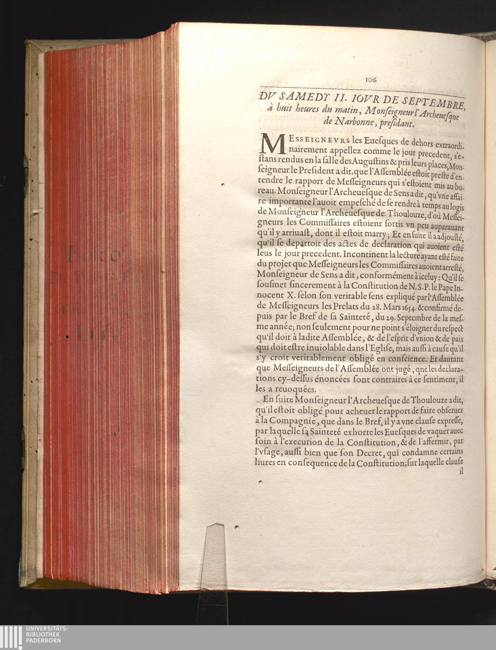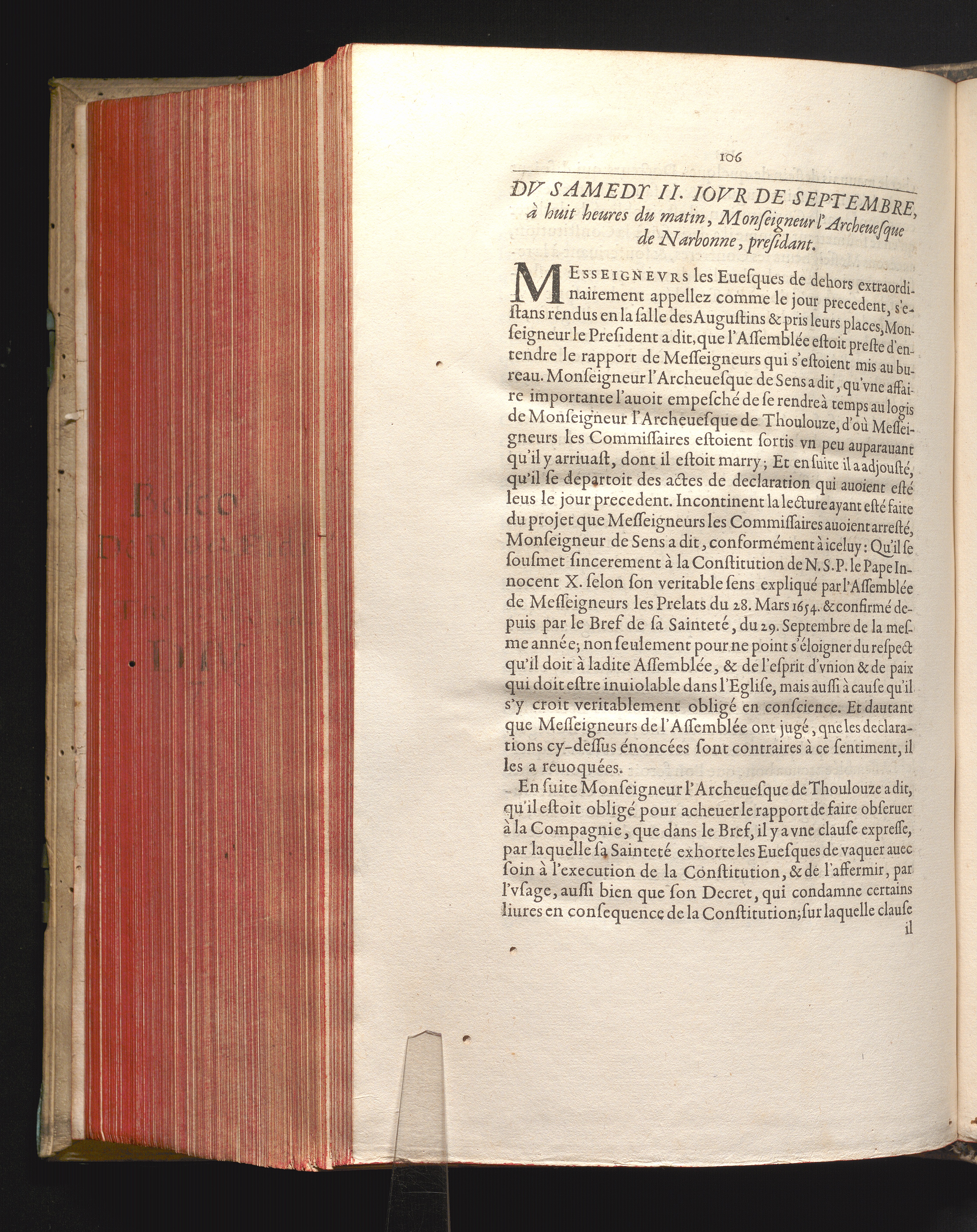 Relation Des Deliberations Dv Clergé De France, Svr La Constitvtion, Et Svr le Bref de N.S.P. le Pape Innocent X. Par Laqvelle Sont Declarées & definies cinq Propositions en matiere de Foy : Auec le Brefs de sa Sainteté, au Roy, & aux Archeuesques & Euesques de ce Royaume