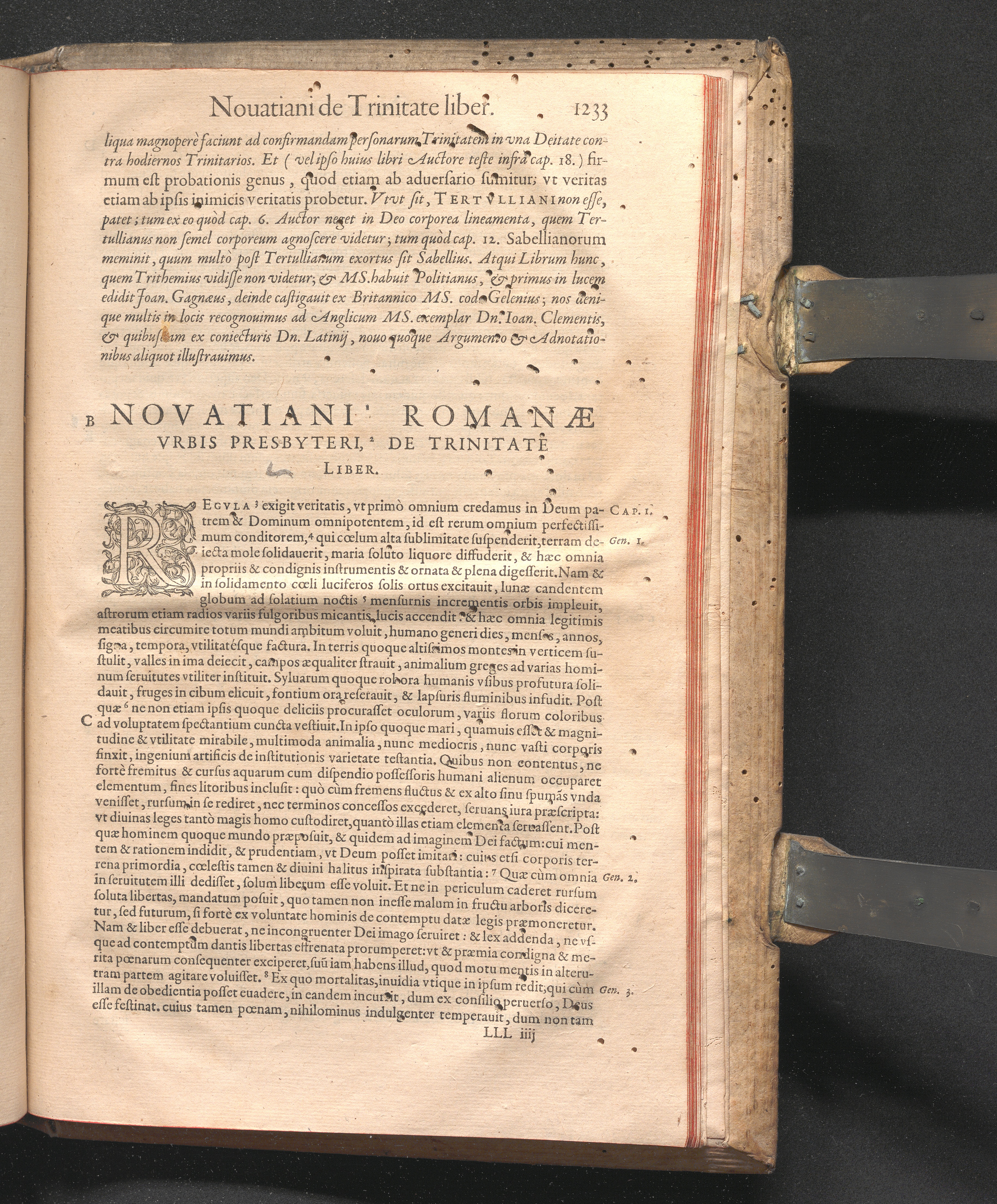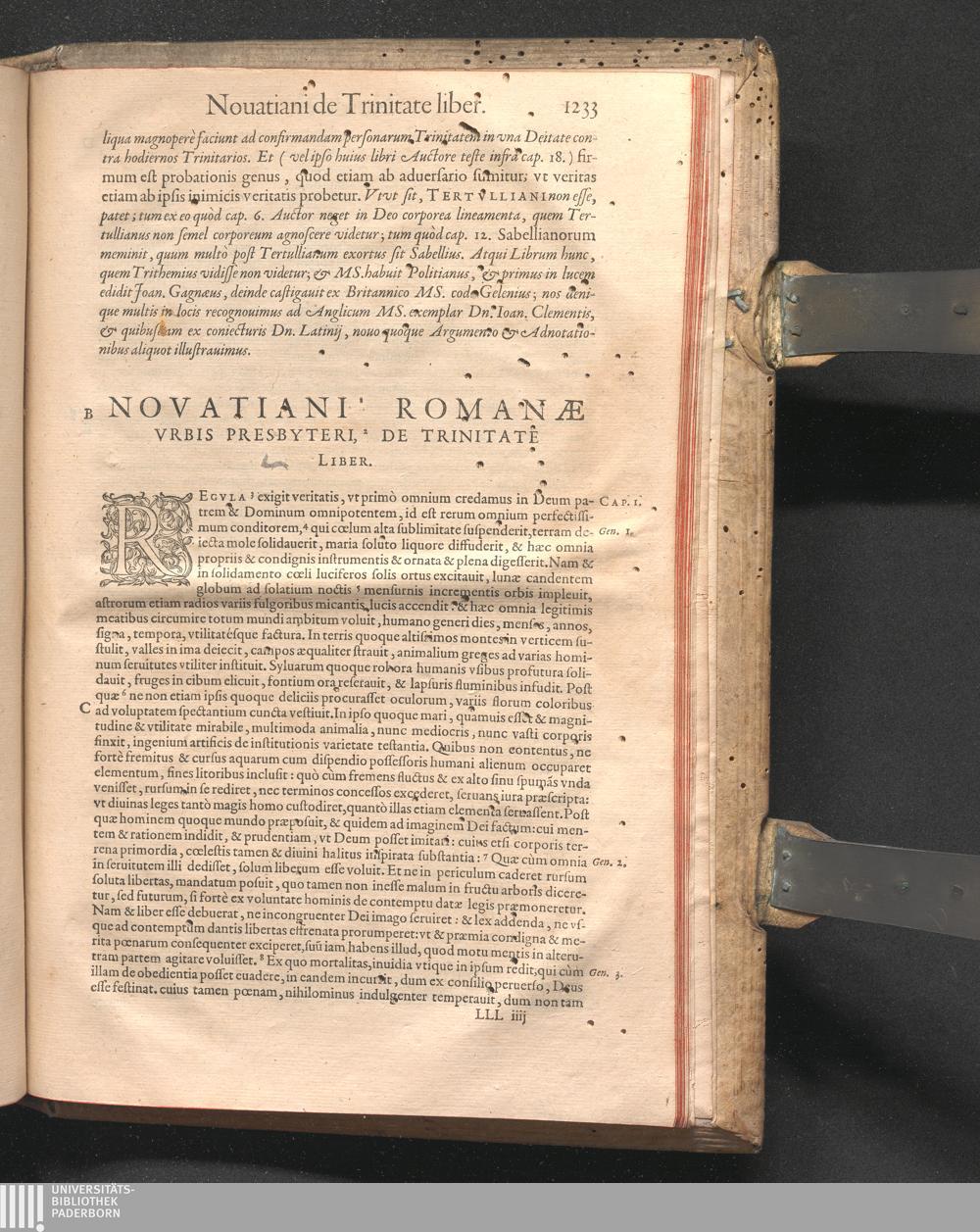 Q. SEPTIMII|| FLORENTIS|| TERTVLLIANI|| CARTHAGINIENSIS|| PRESBYTERI, OPERA|| QVÆ HACTENVS REPERIRI|| POTVERVNT OMNIA:|| : IAM POSTREMVM, AD EXEMPLARIA|| manuscripta collatione facta, quam accuratissimè recognita, aliquot etiam|| libris auctiora; nunc primùm in capita, & certo ordine, habita quantum|| fieri potuit temporum ratione, in QVINQVE TOMOS distincta.|| ...|| Catalogum totius Operis inueniet Lector post Epistolas Dedicatorias; & in|| singulis Tomis Præfatiunculas de librorum ordine.|| / CVM IACOBI PAMELII BRVGENSIS, THEOLOGI,|| Archidiaconi Audomaropolitani, Argumentis & Adnotationibus toti Operi|| interiectis; quibus tum loci obscuriores explicantur, tum quidquid|| ad Antiquitatem Ecclesiasticam spectat, illustratur.||