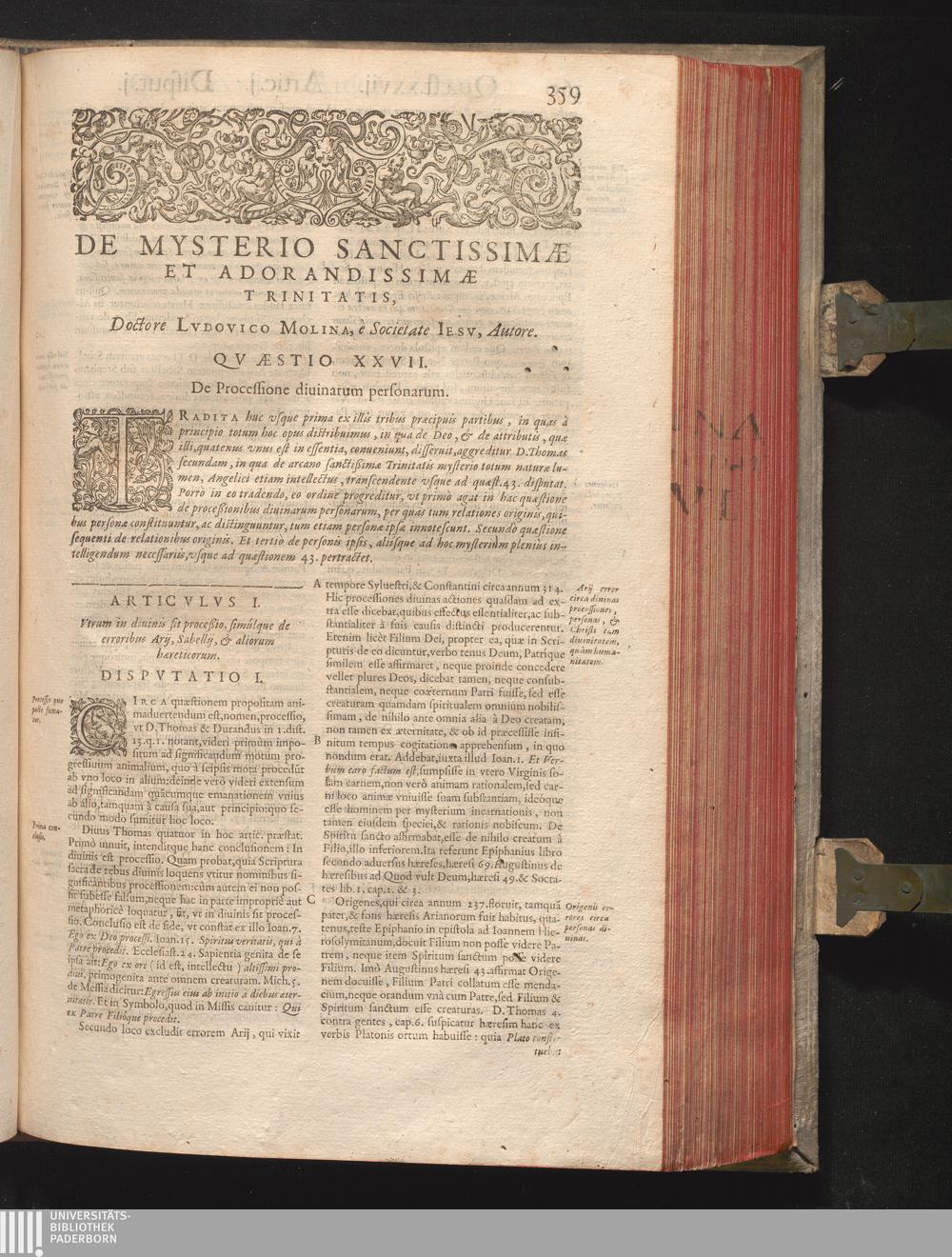 Lvdovici Molinæ, E Societate Iesv Theologiæ Doctoris, & Professoris, Commentaria, In primam D. Thomæ partem : in duos Tomos diuisa, Quorum alter XXVI. Quæstionum Priorum expositonem continet, alter vnà cum reliquarum Quæstionum explicatione, tractatum de Opere sex dierum complectitur