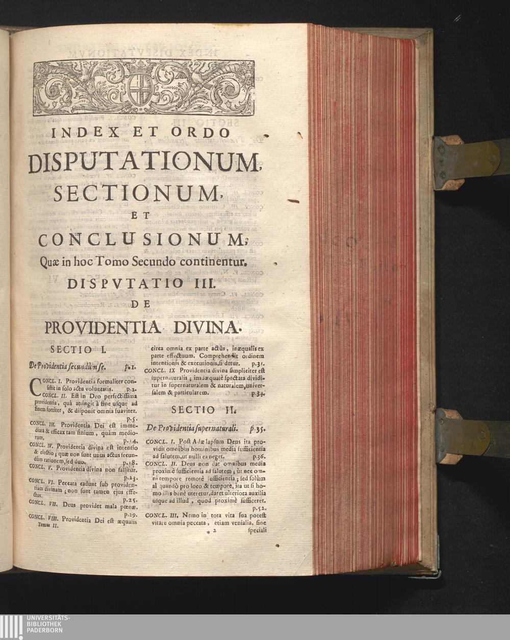 Index Et Ordo Disputationum Sectionum, Et Conclusionum, Quæ in hoc Tomo Secundo [...]