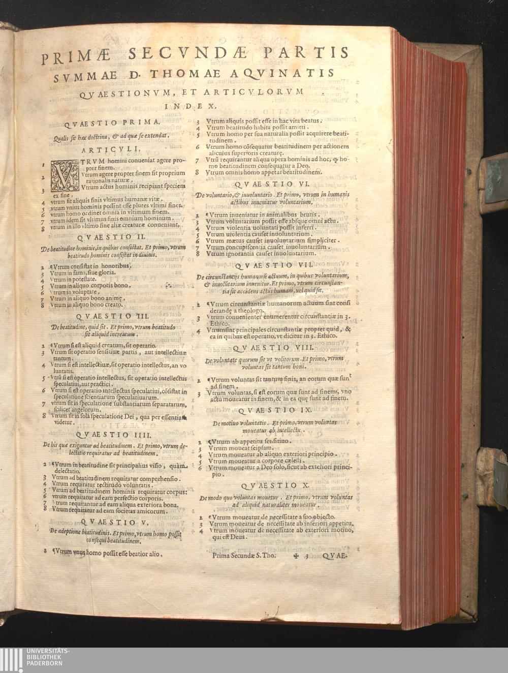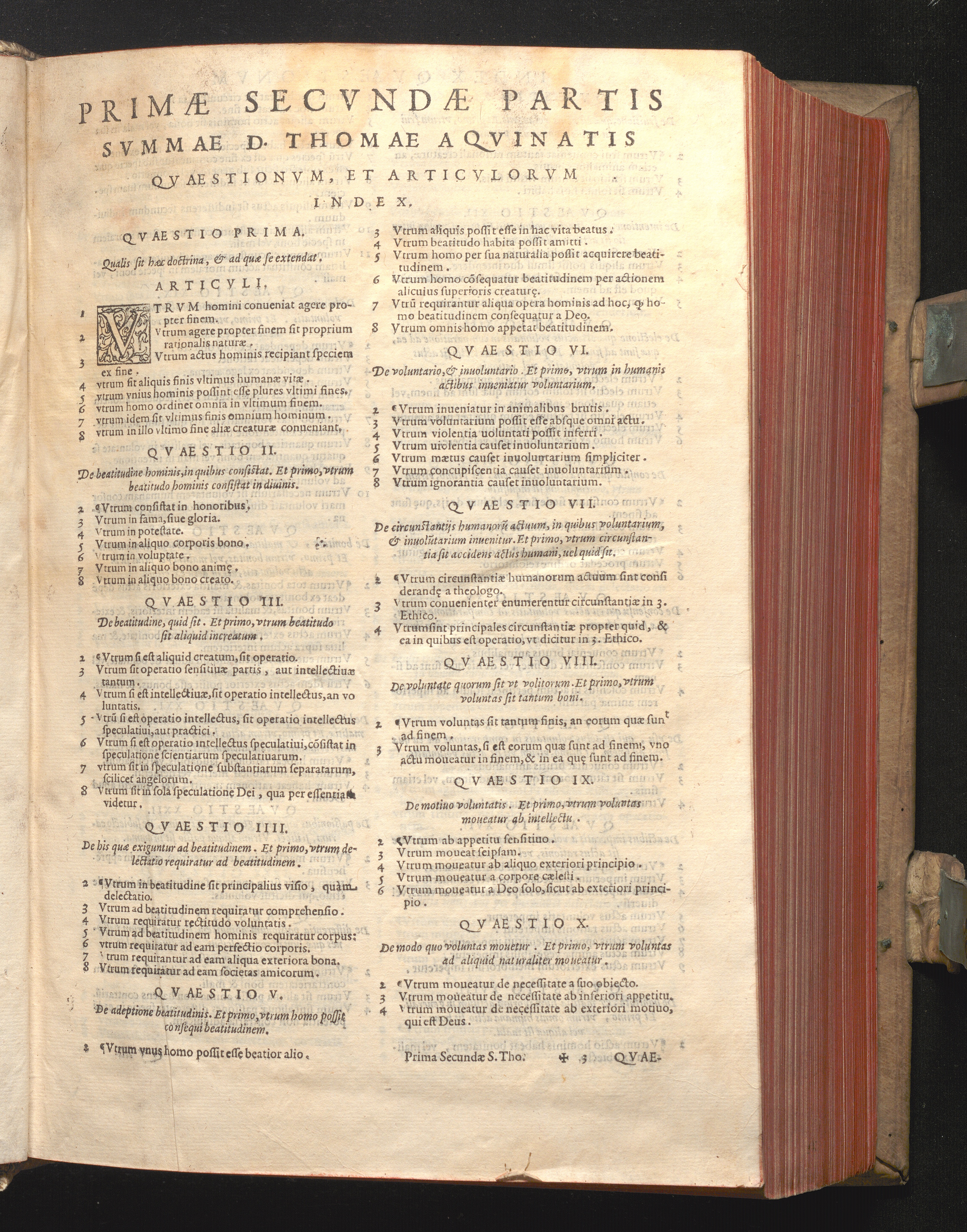 Primæ Secvndæ Partis Svmmæ D. Thomæ Aqvinatis Qvæstionvm, Et Articvlorvm Index.