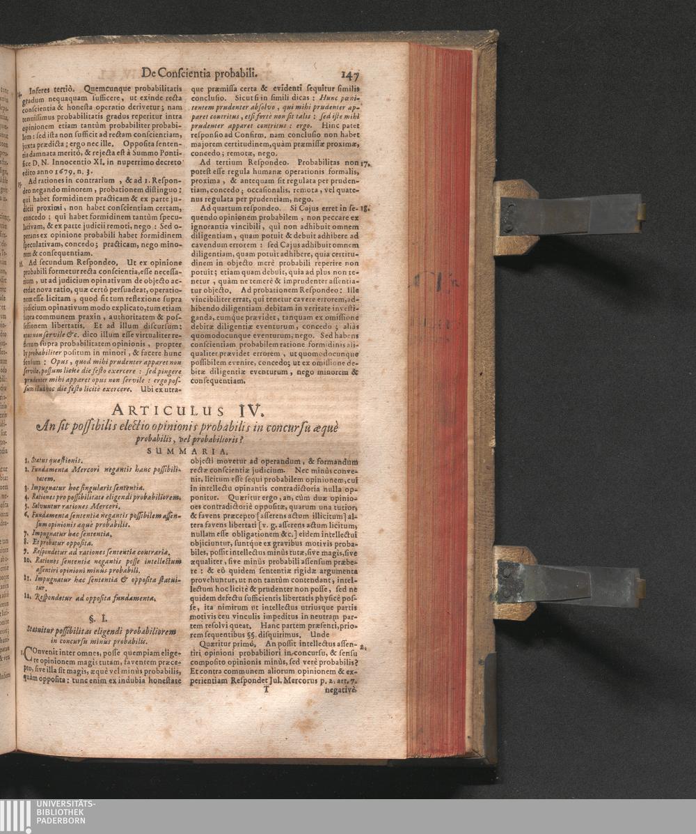 Articulus IV. An sit possibilis electio opinionis probabilis in concurso æquè probabilis,[...]