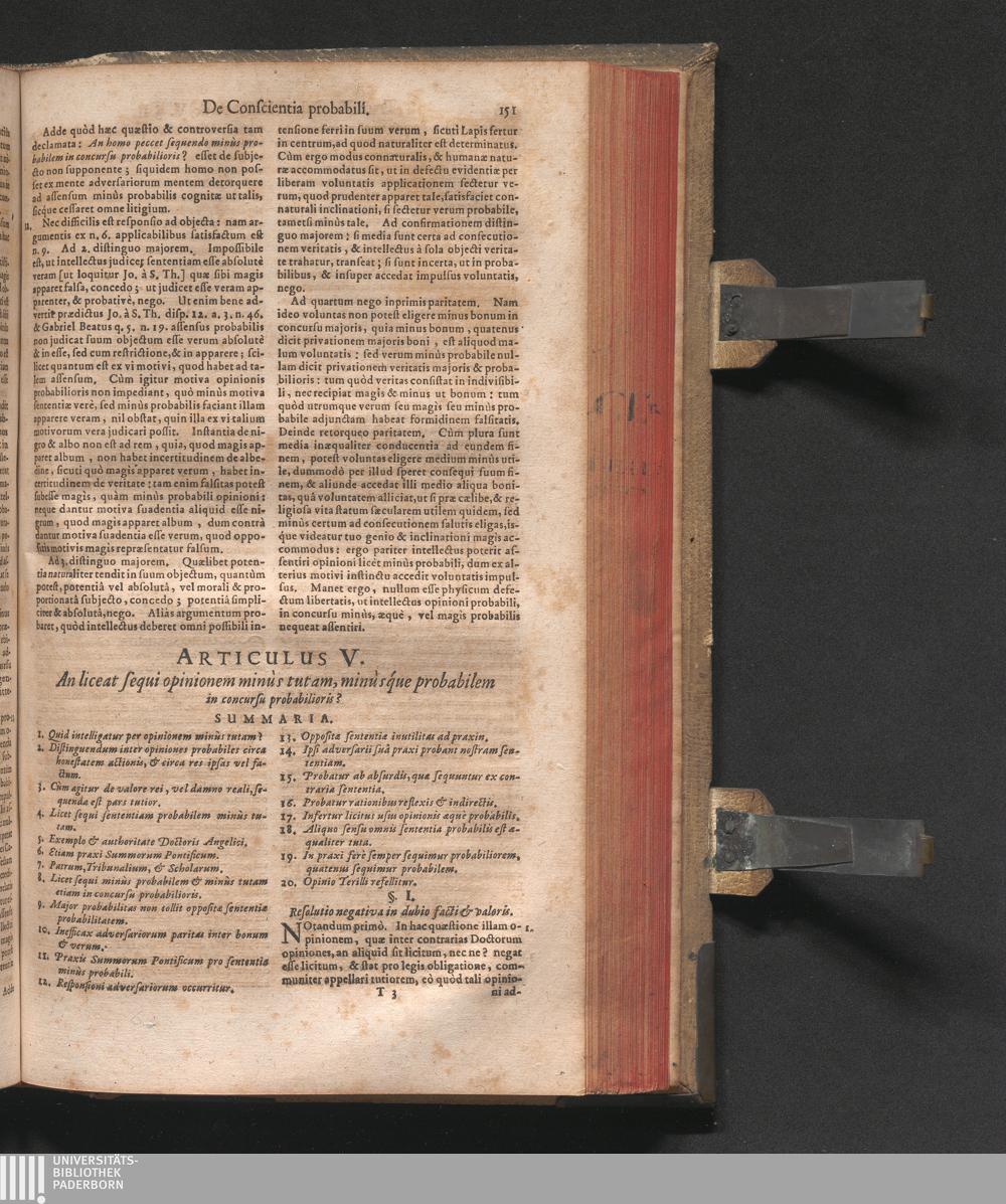 Articulus V. An liceat sequi opinionem minùs tutam minùsque probabilem in concursu[...]