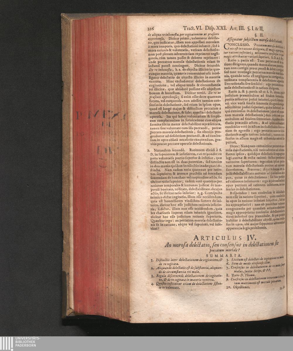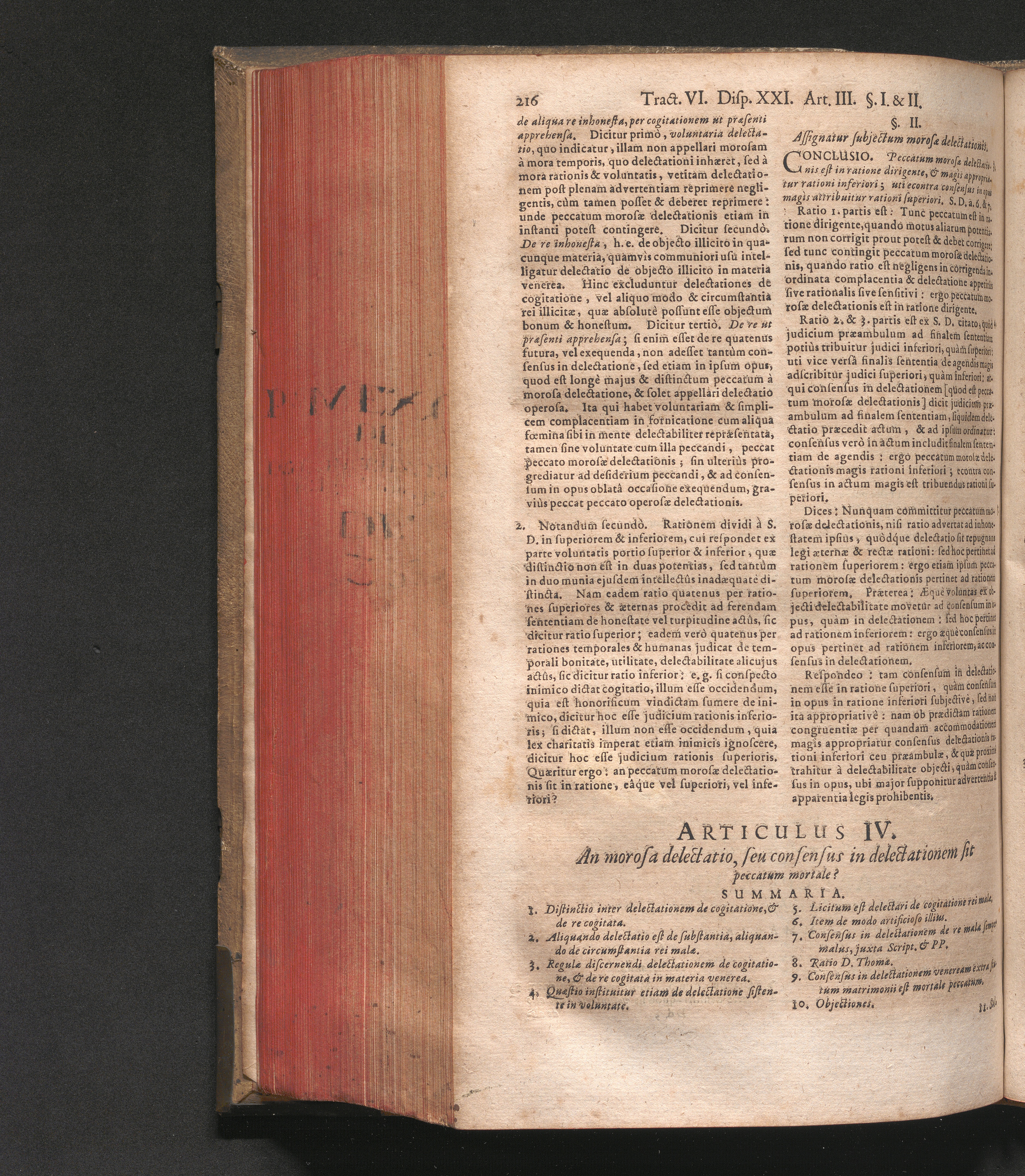 Articulus IV. An morosa delectatio, seu consensus in delectationem sit peccatum [...]