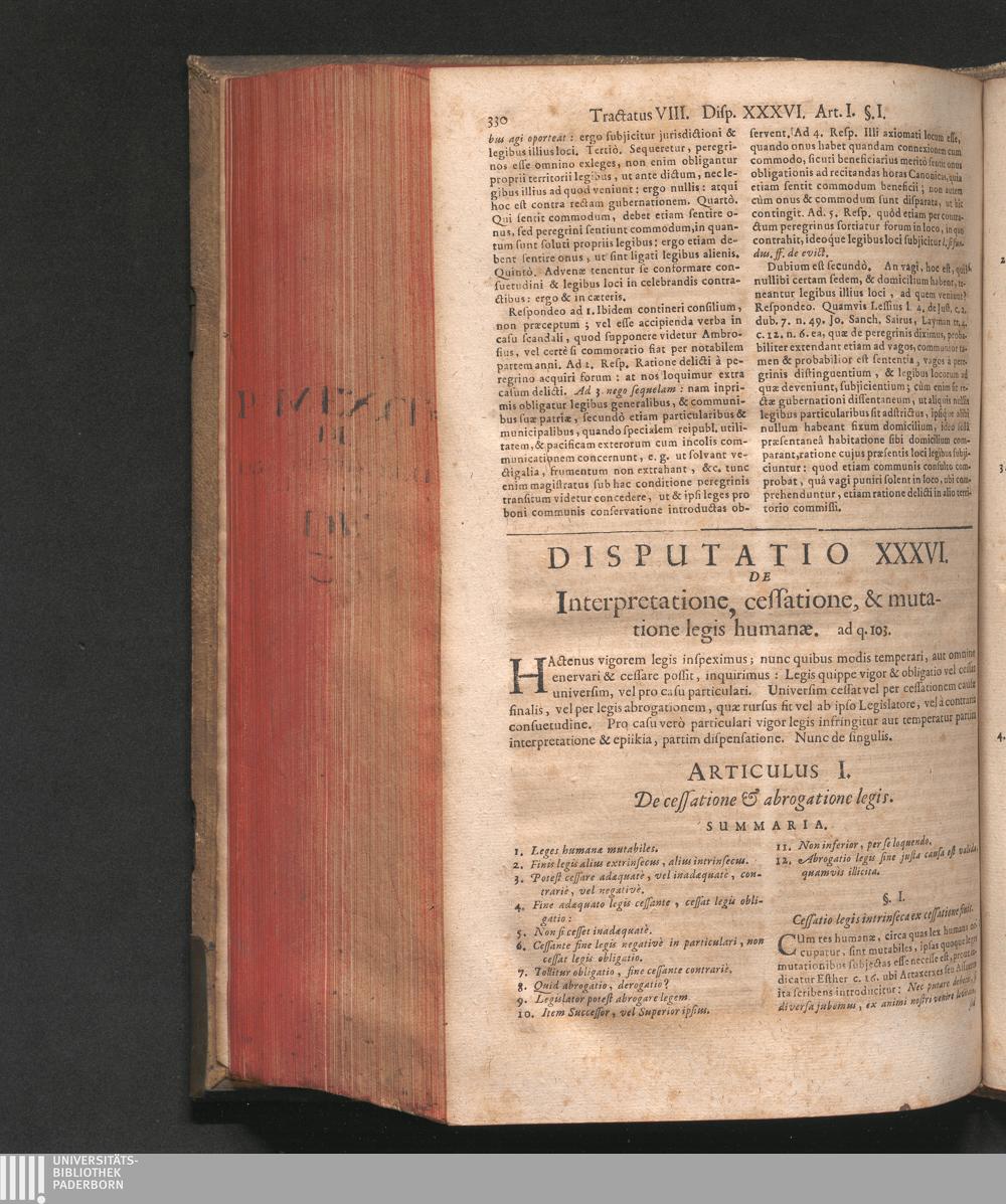 Disputatio XXXVI. De interpretatione, cessatione, & mutatiene legis humanæ. ad q.[...]