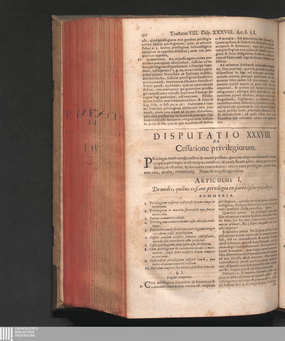 Disputatio XXXVIII. De cessatione privilegiorum.