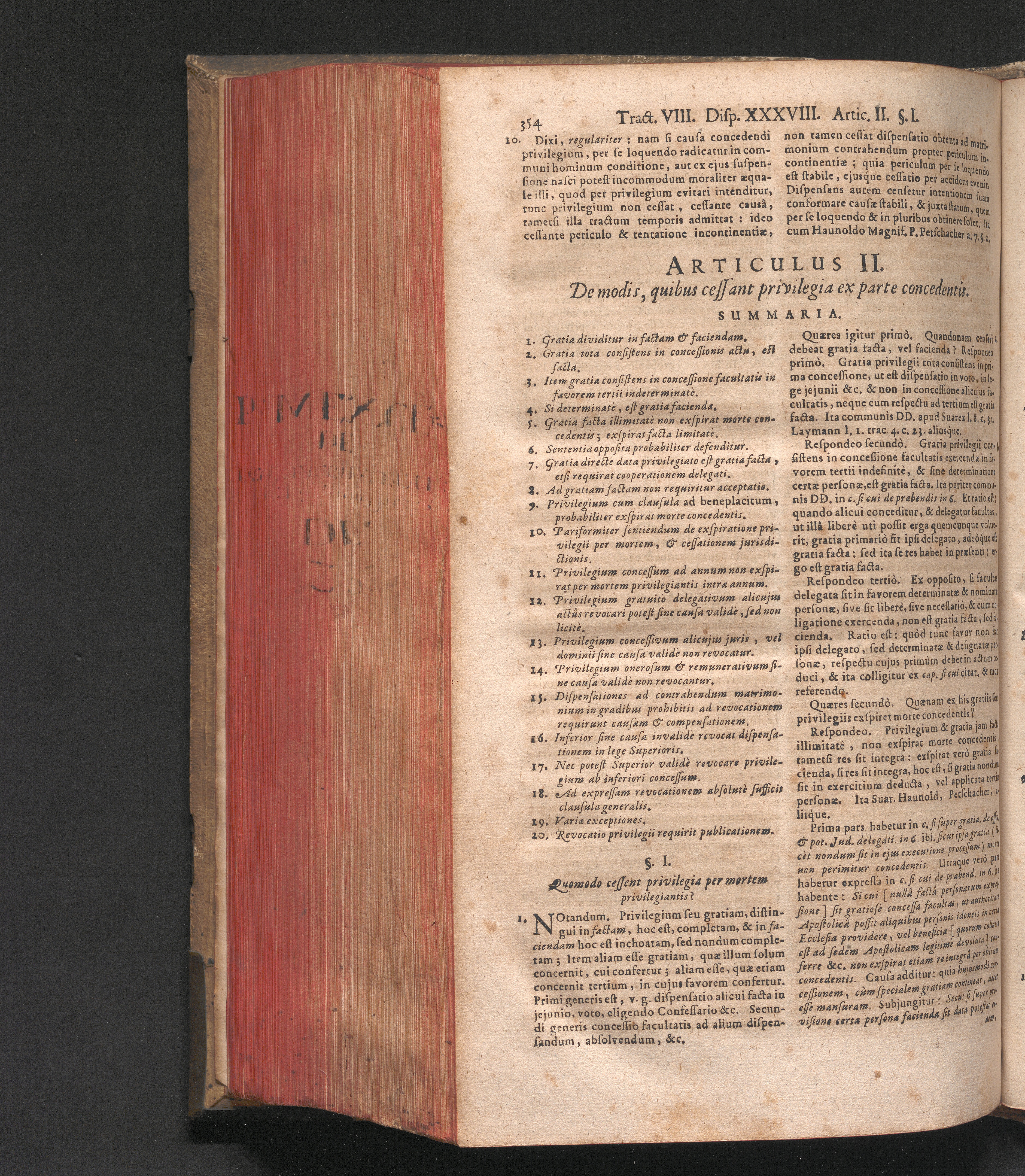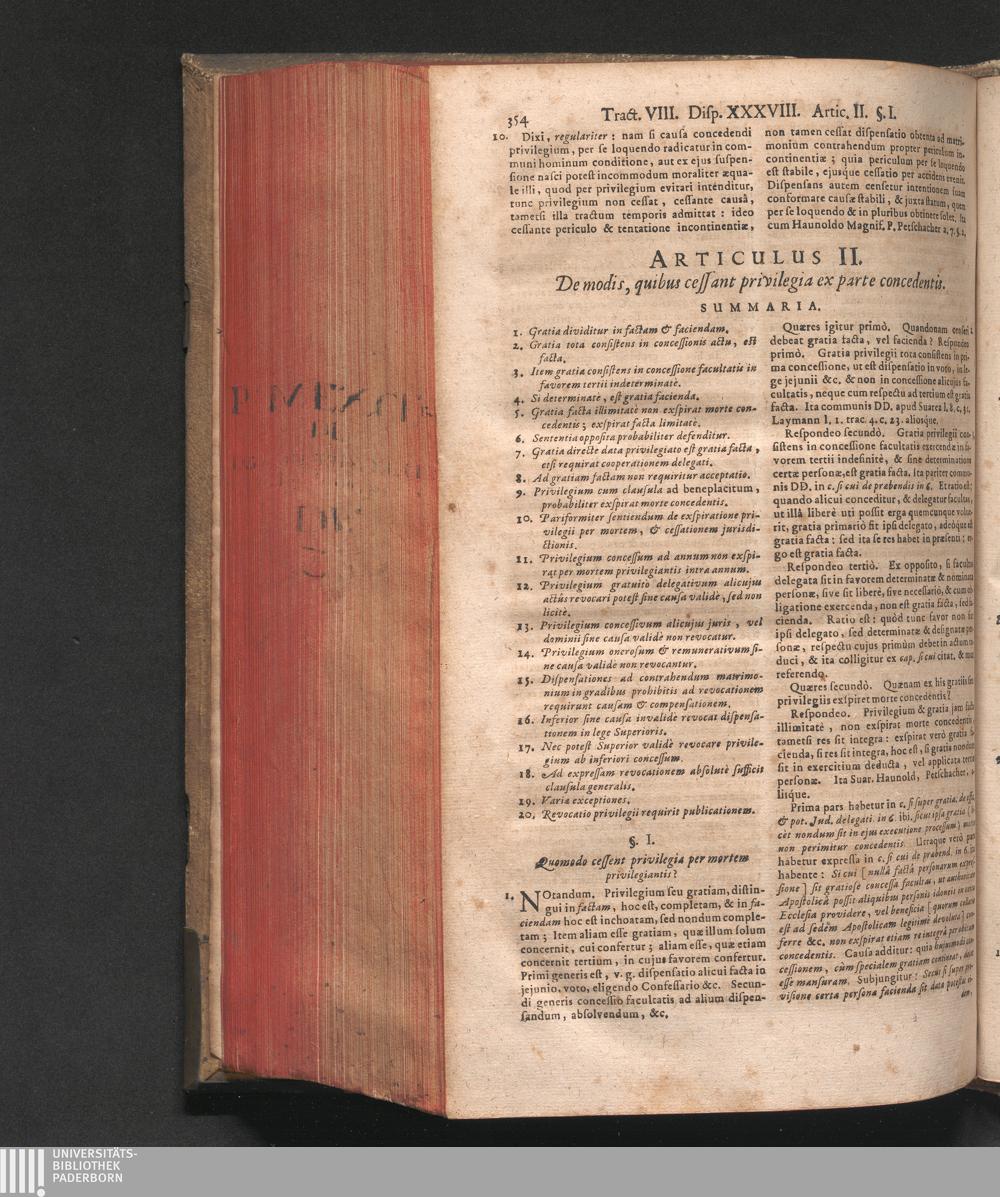 Disputatio XXXVIII. De cessatione privilegiorum.