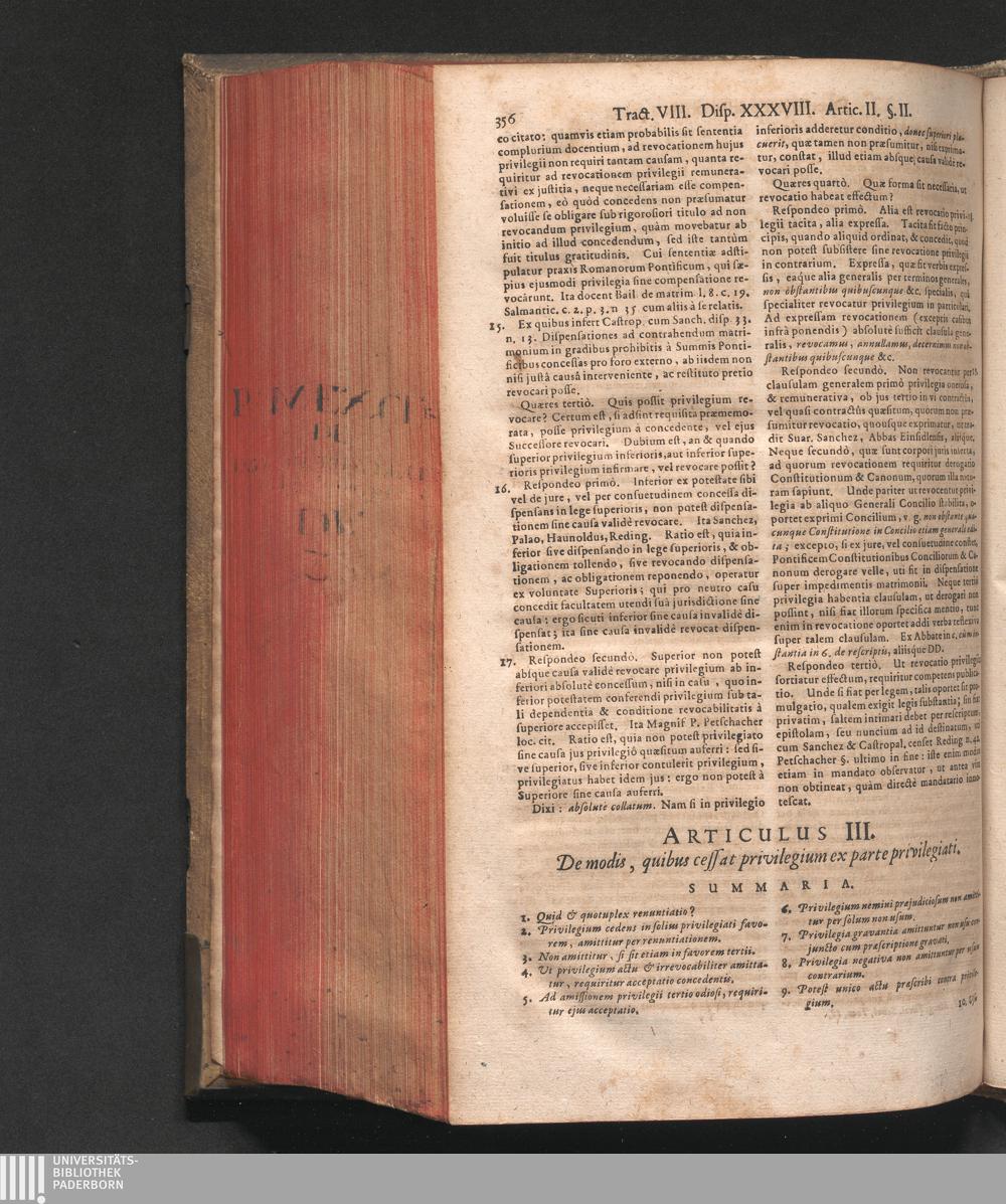 Disputatio XXXVIII. De cessatione privilegiorum.
