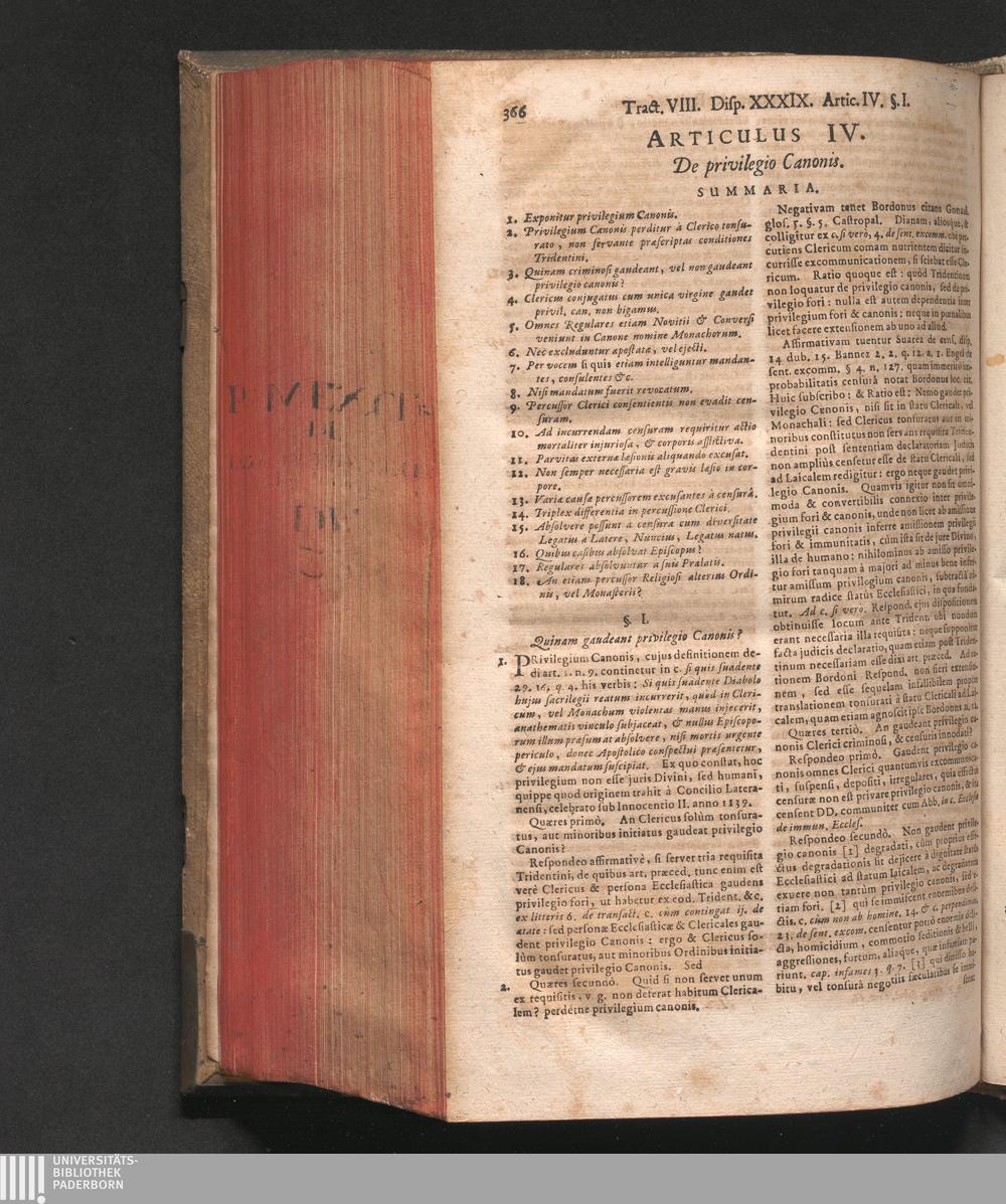 Disputatio XXXIX. De Privilegiis Clericorum & Religiosorum.