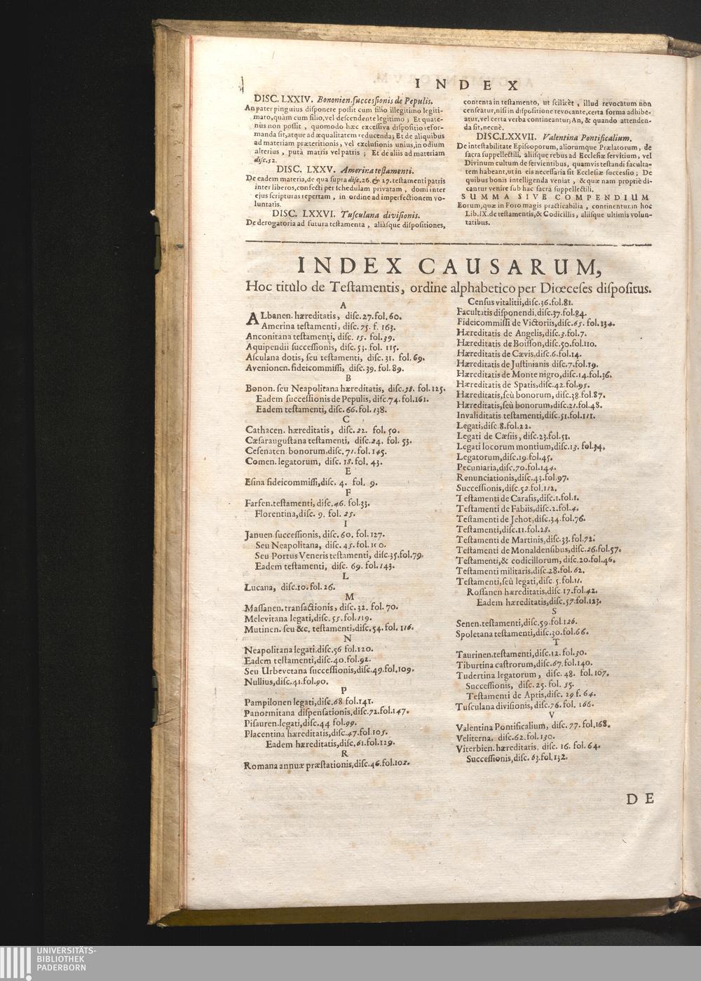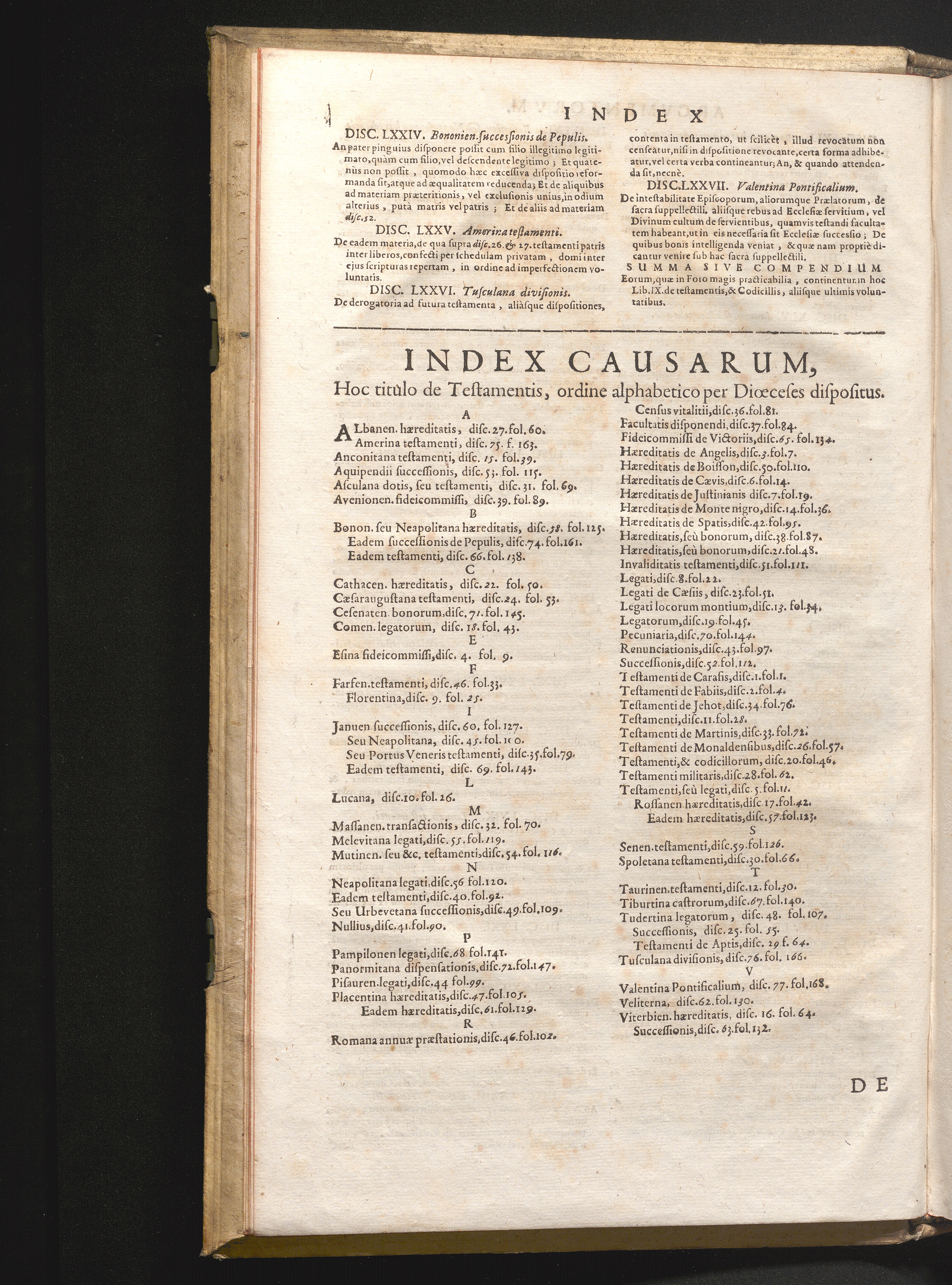 Index Causarum, Hoc titulo de Testamentis, ordine alphabetico per Diœceses dispo[...]