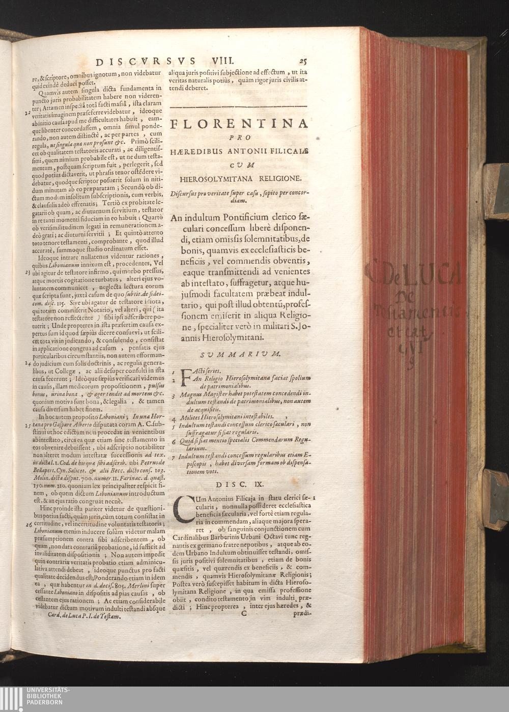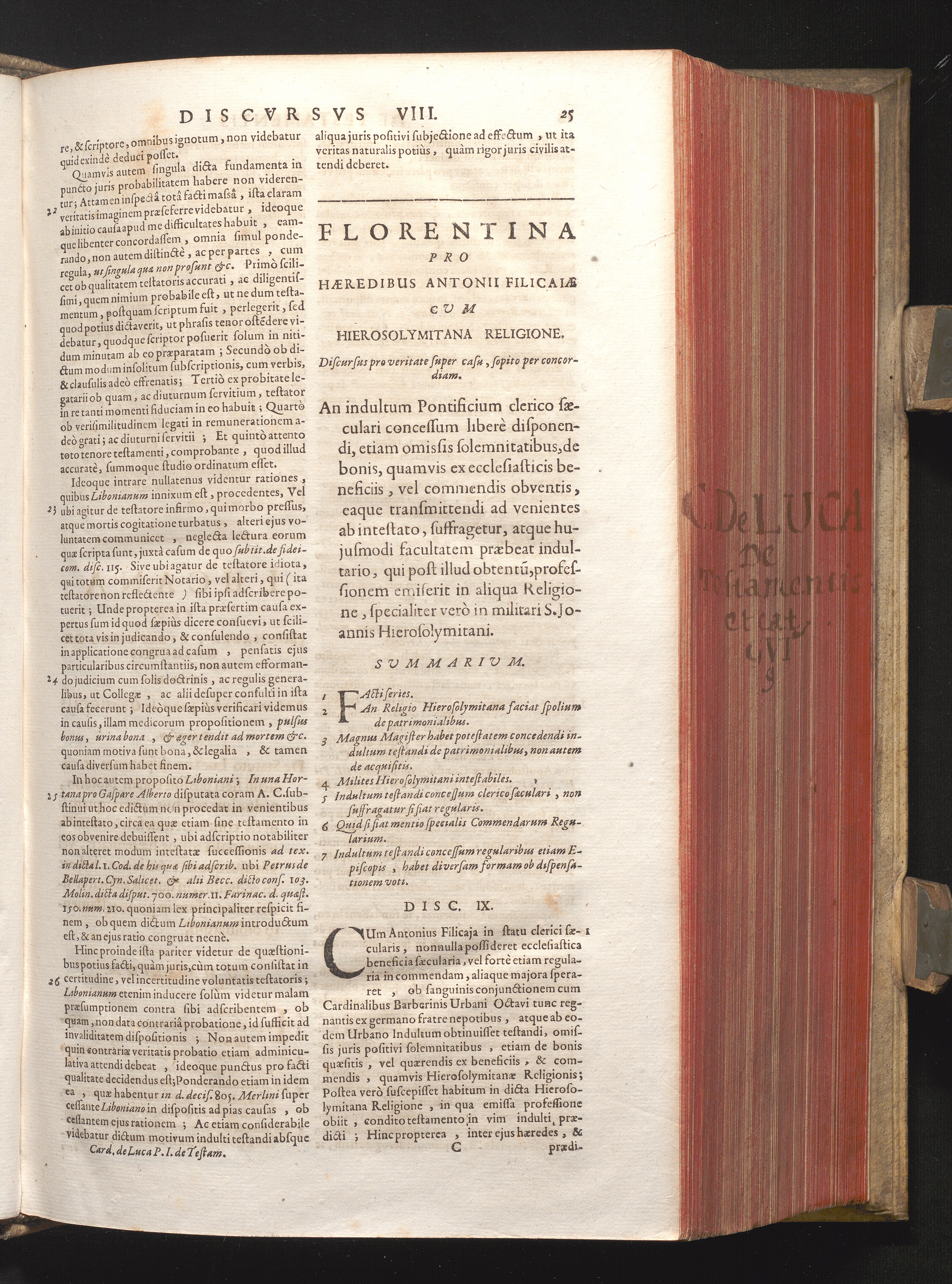 Disc. IX. Florentina. An indultum Pontificium Clerico sæculari concessum liberè disponendi,[...]