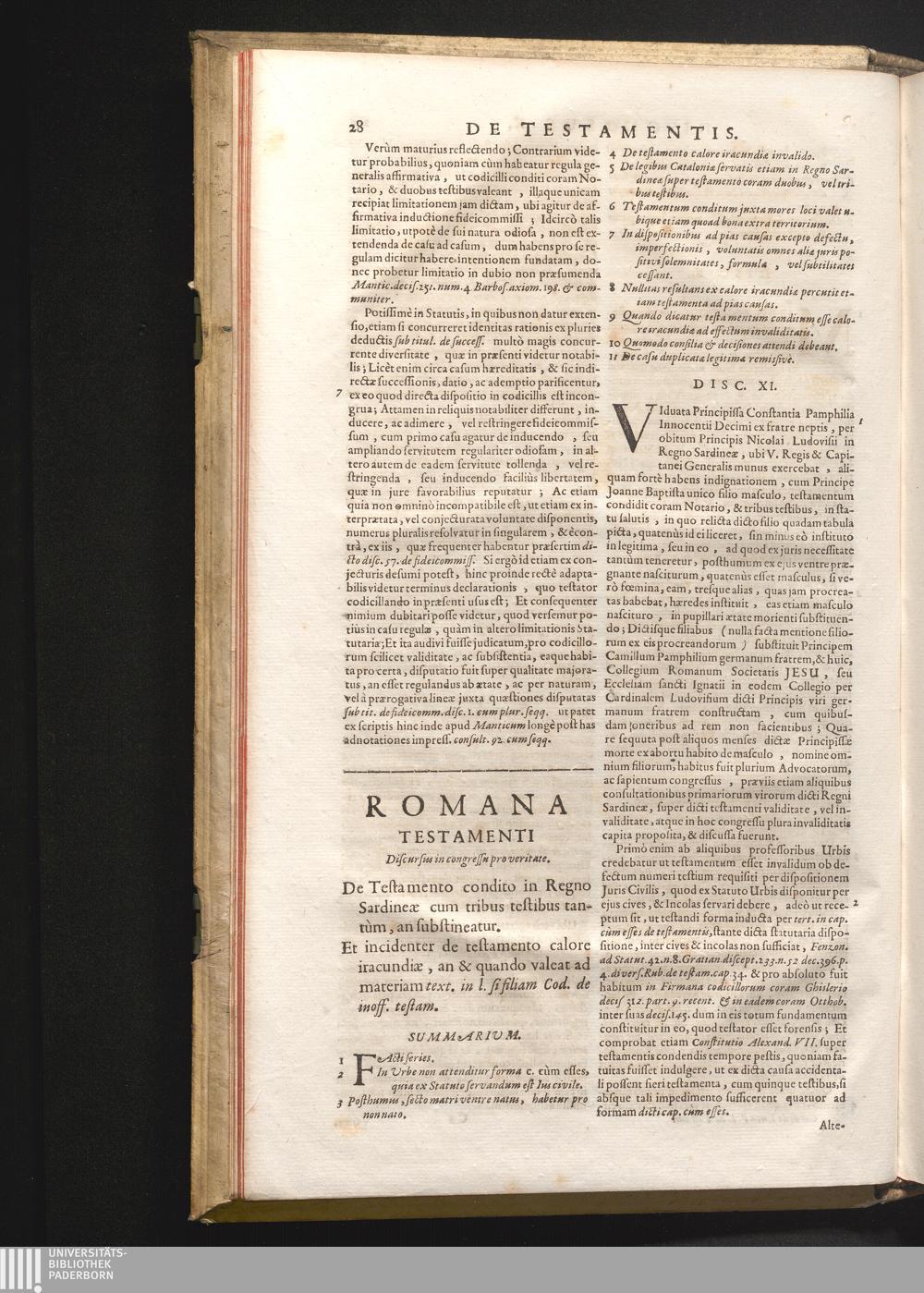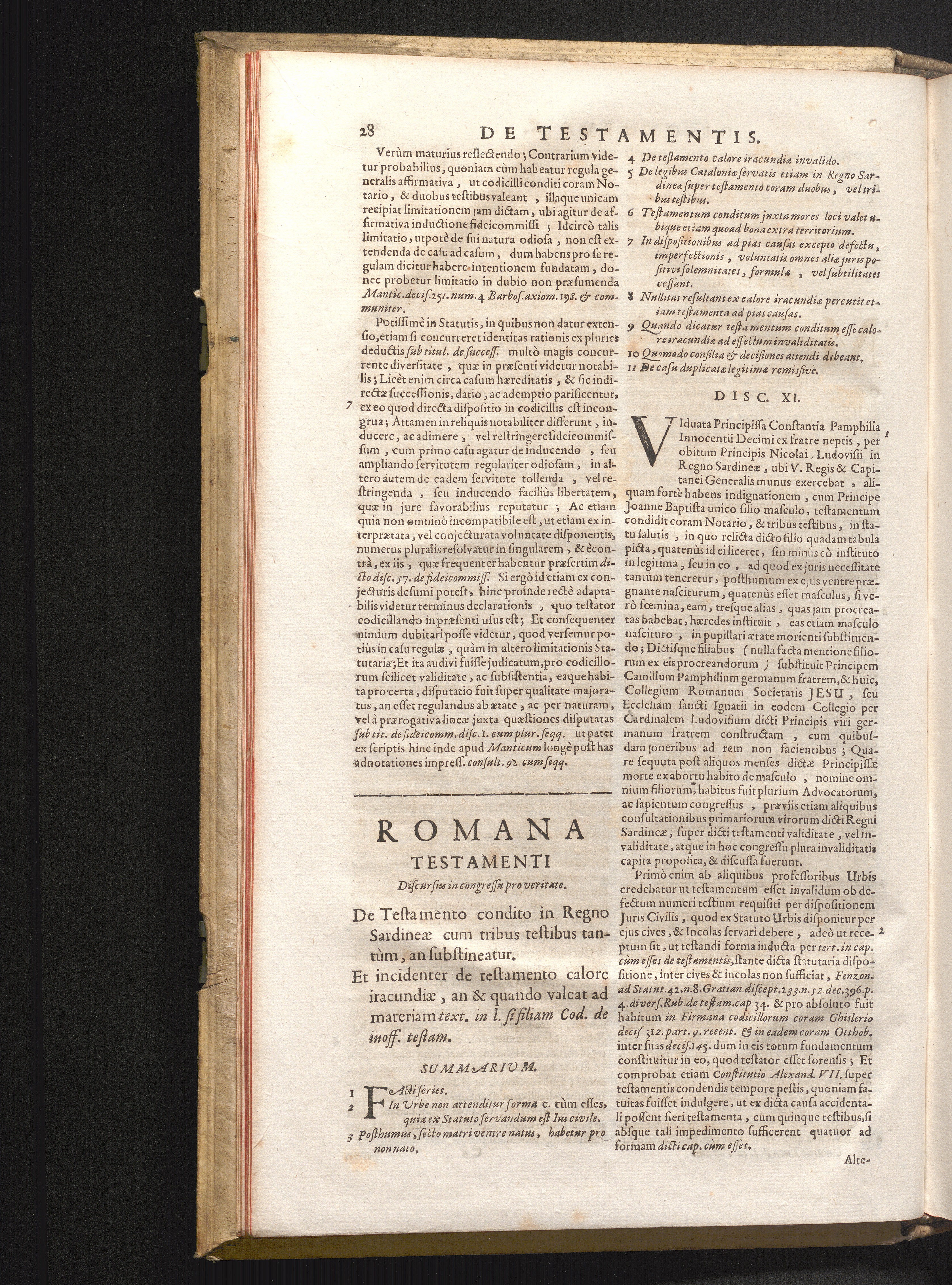 Disc. XI. Romana testamenti. De testamento condito in Regno Sardineæ cum tribus testibus[...]