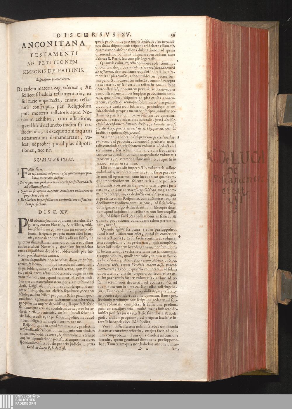 Disc. XV. Anconitana testamenti. De eadem materia cap. relatum; An scilicet schedula[...]