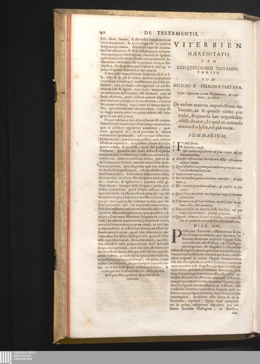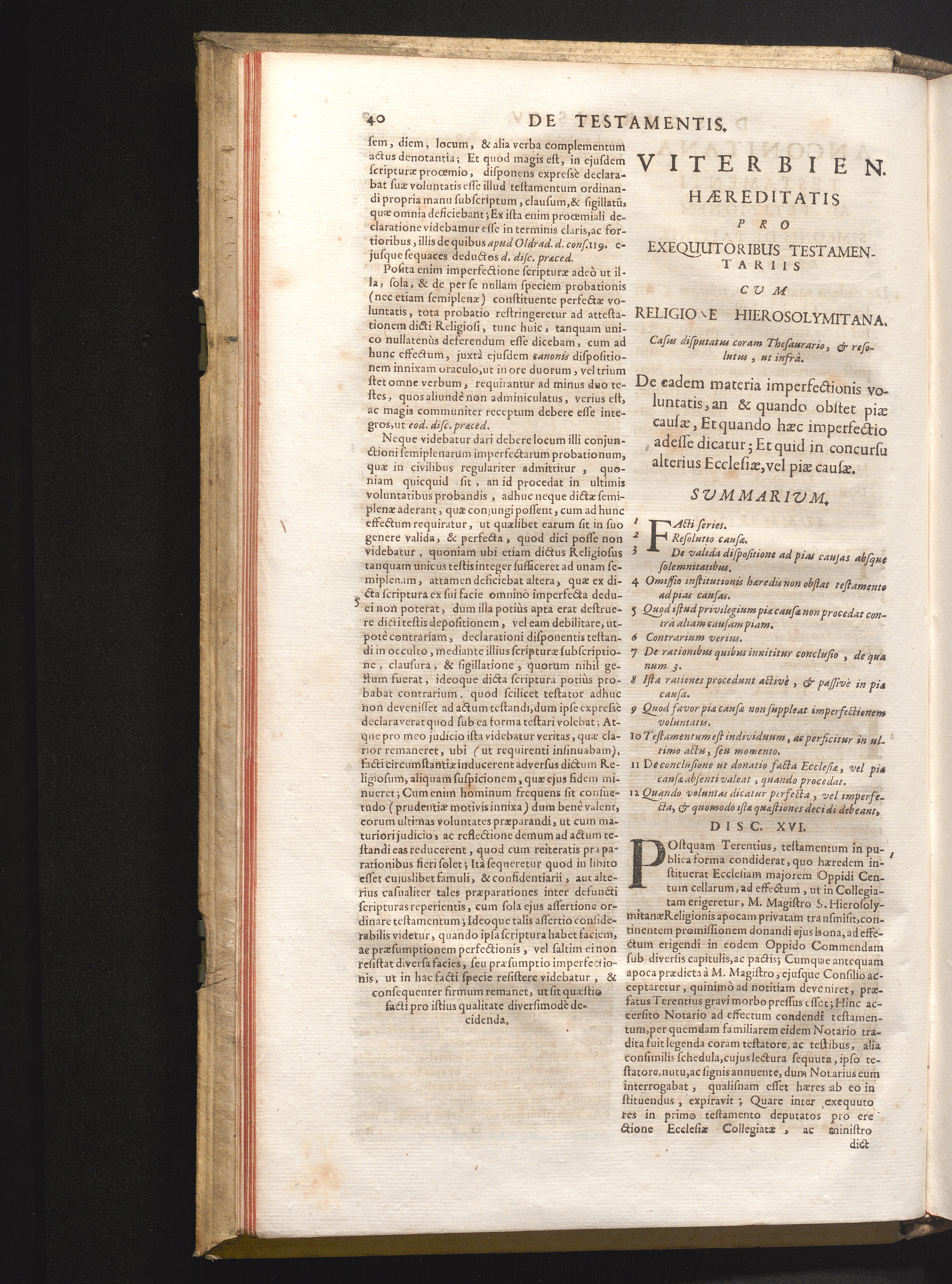 Disc. XVI. Viterbien. hæreditatis. De eadem materia imperfectionis voluntatis, an[...]