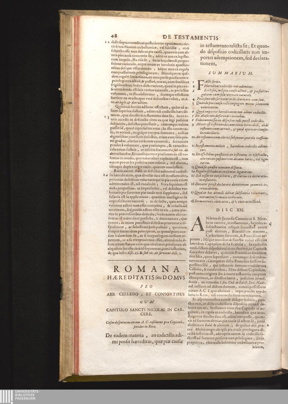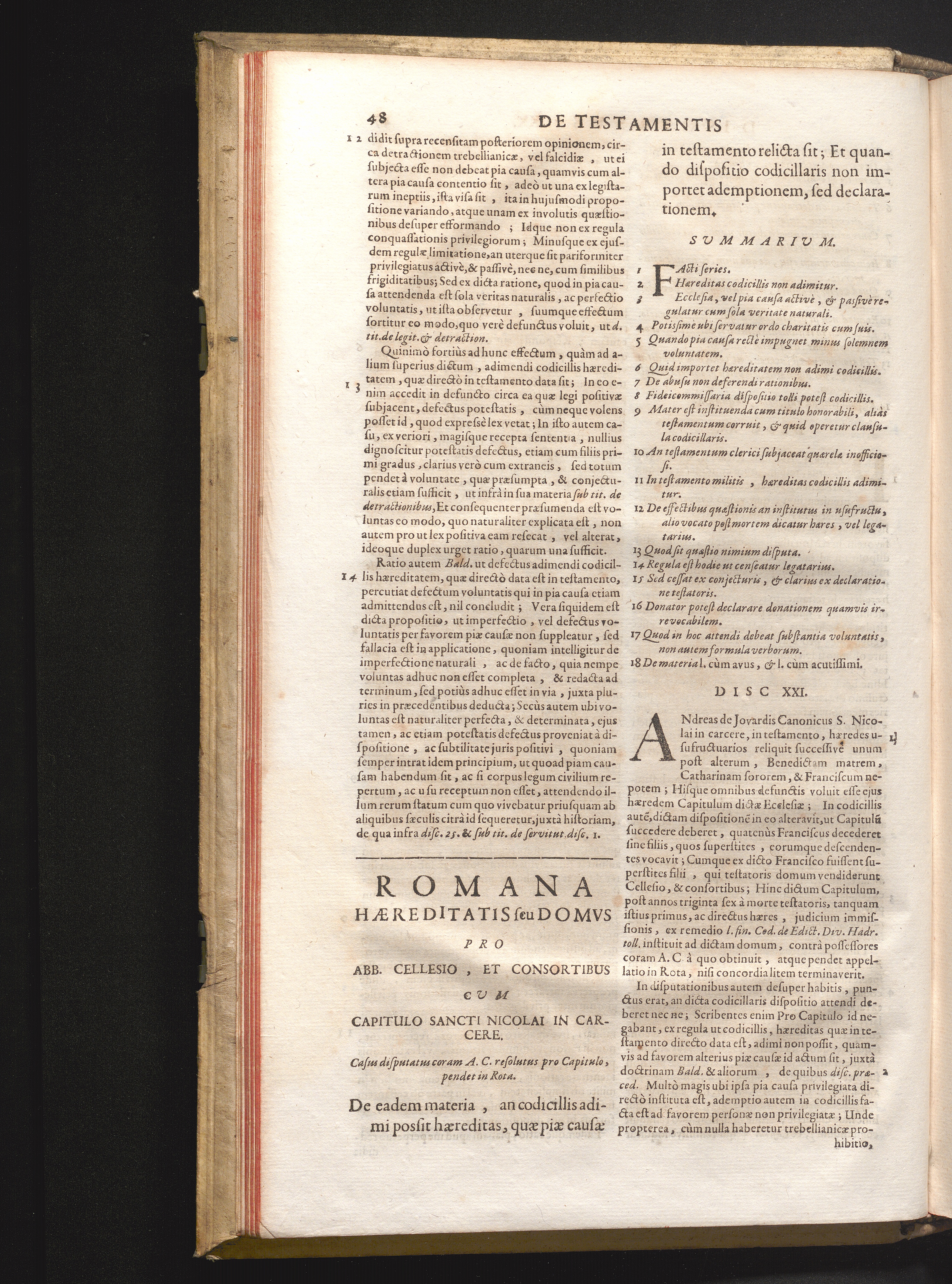 Disc. XXI. Romana Hæreditatis, seu domus. De eadem materia, an codicillis adimi possit[...]