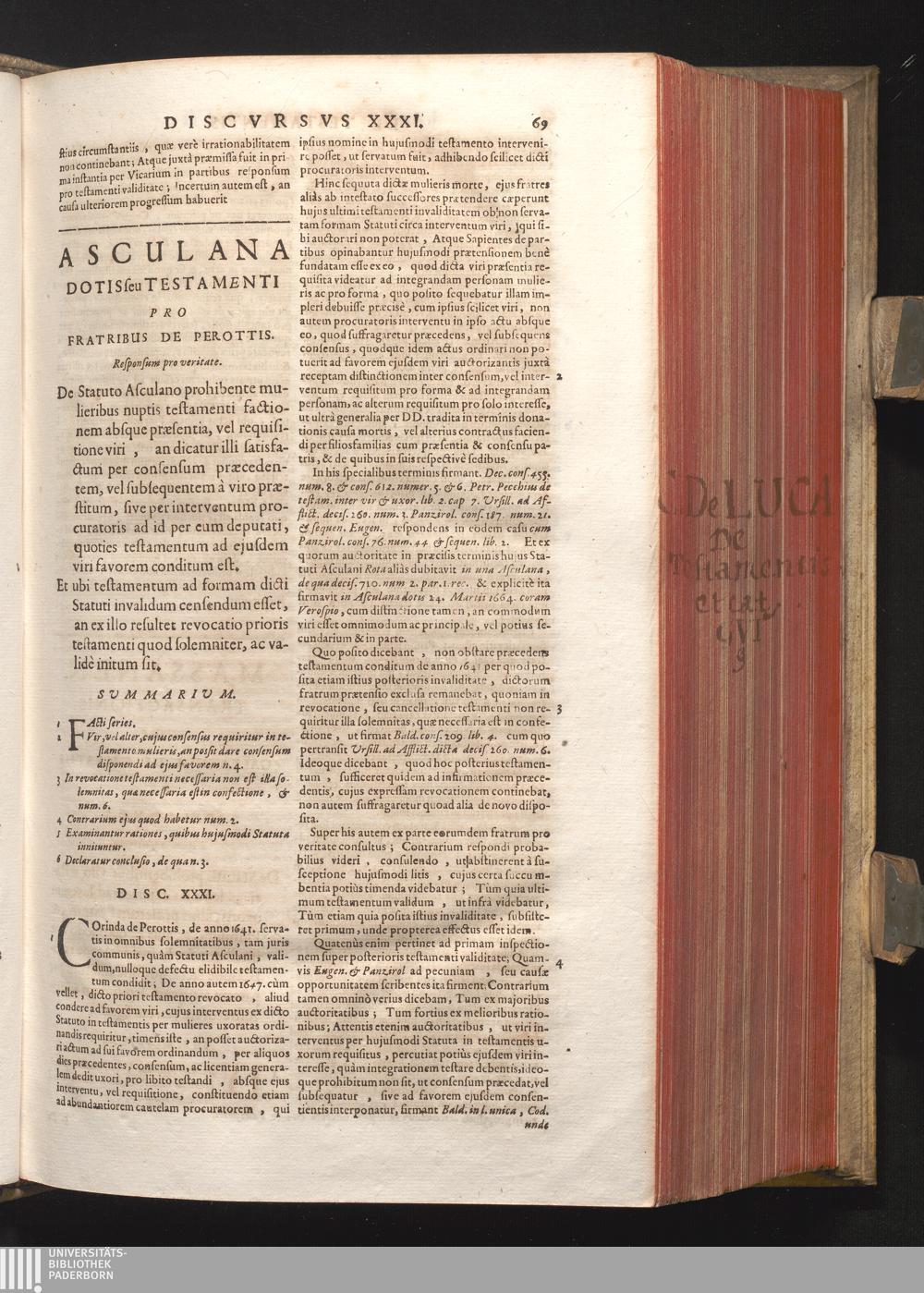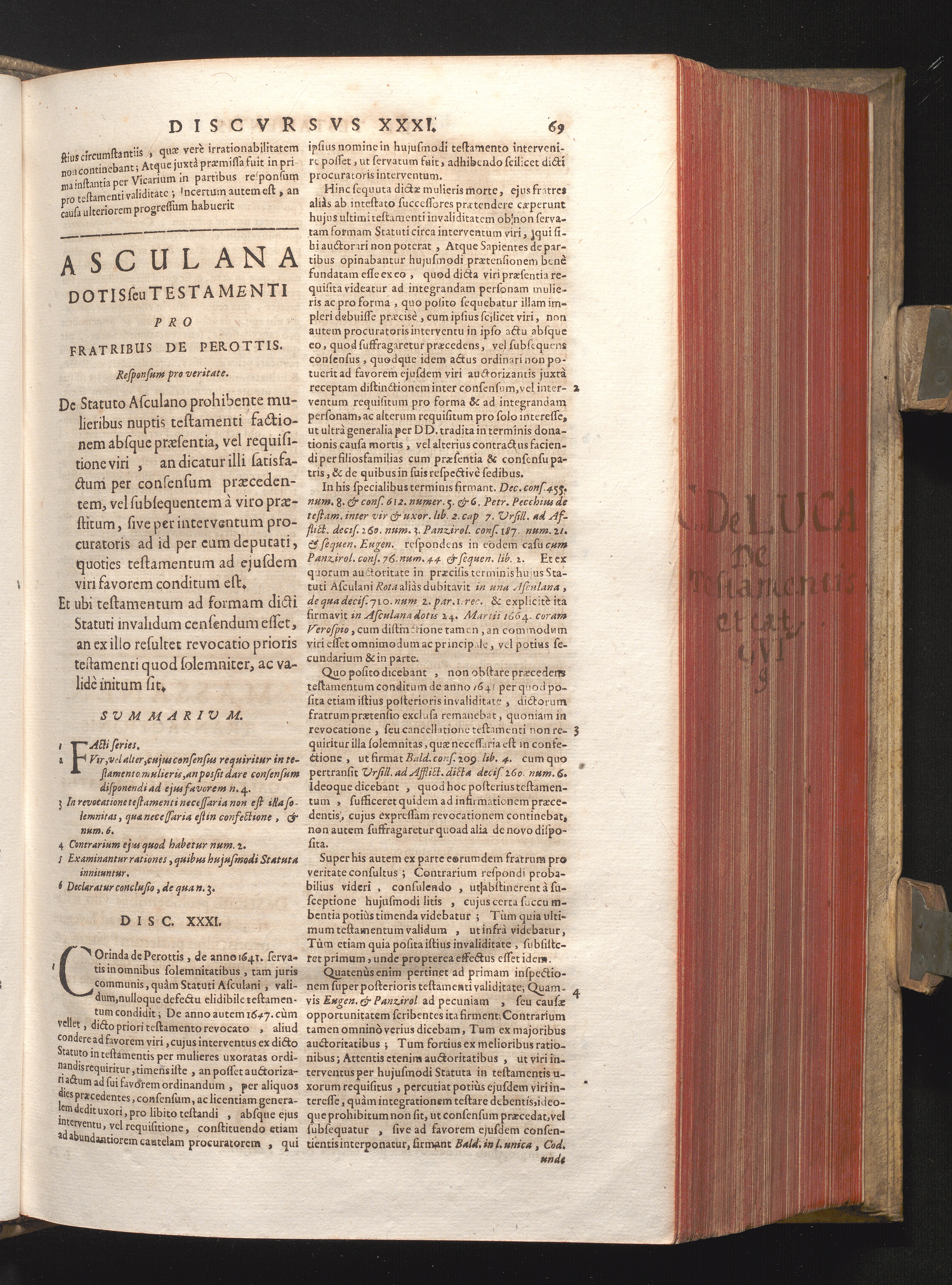 Disc. XXXI. Asculana dotis, seu testamenti. De Statuto Asculano prohibente mulieribus[...]