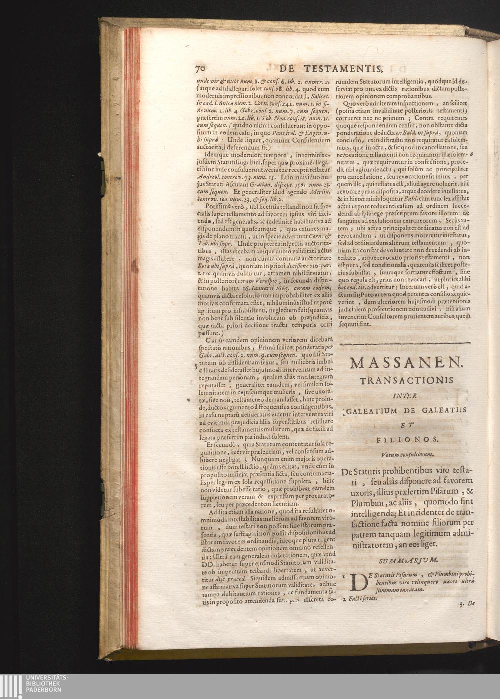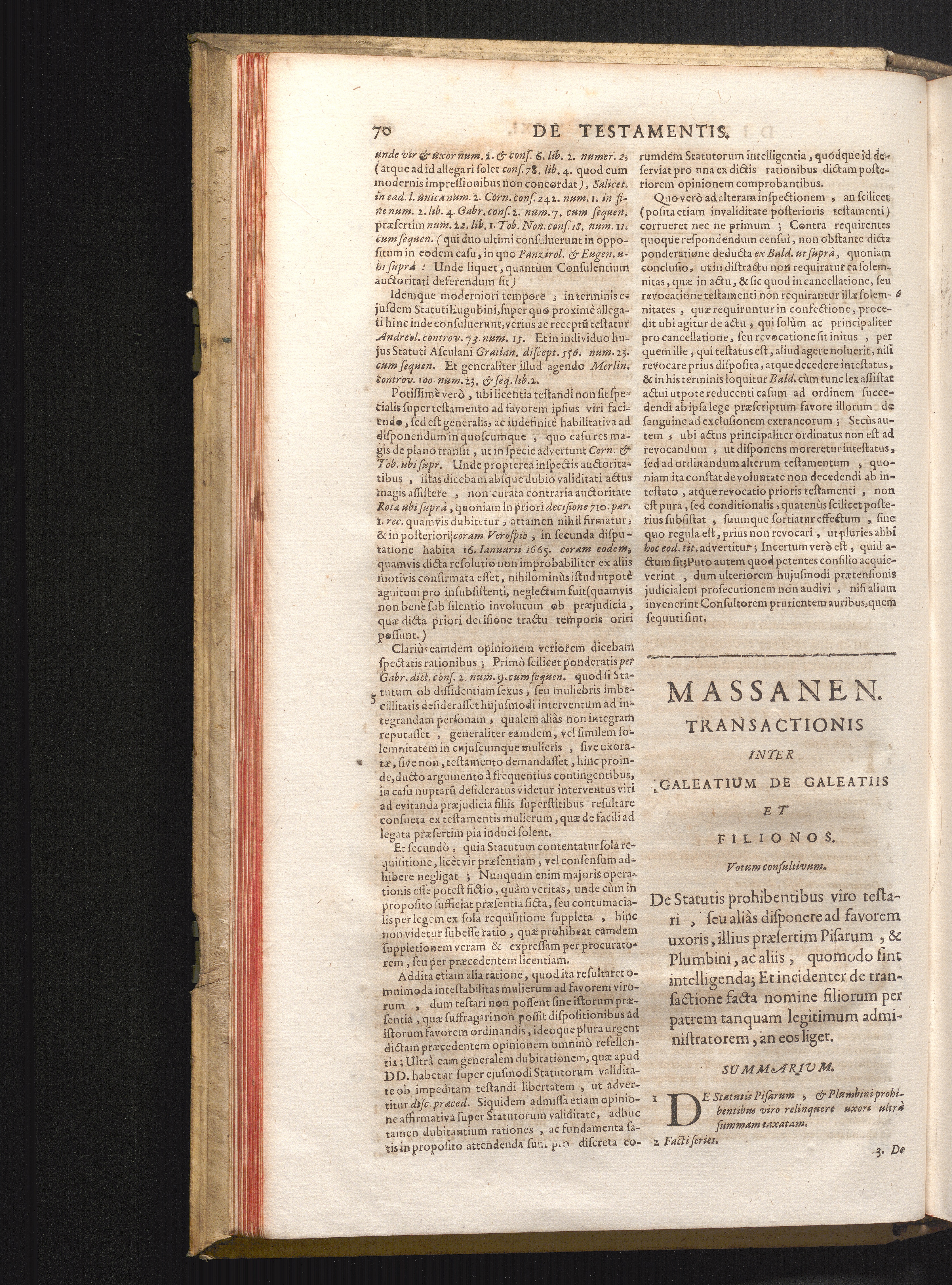 Disc. XXXII. Massanen. transactionis. De Statutis prohibentibus viro testari, seu[...]