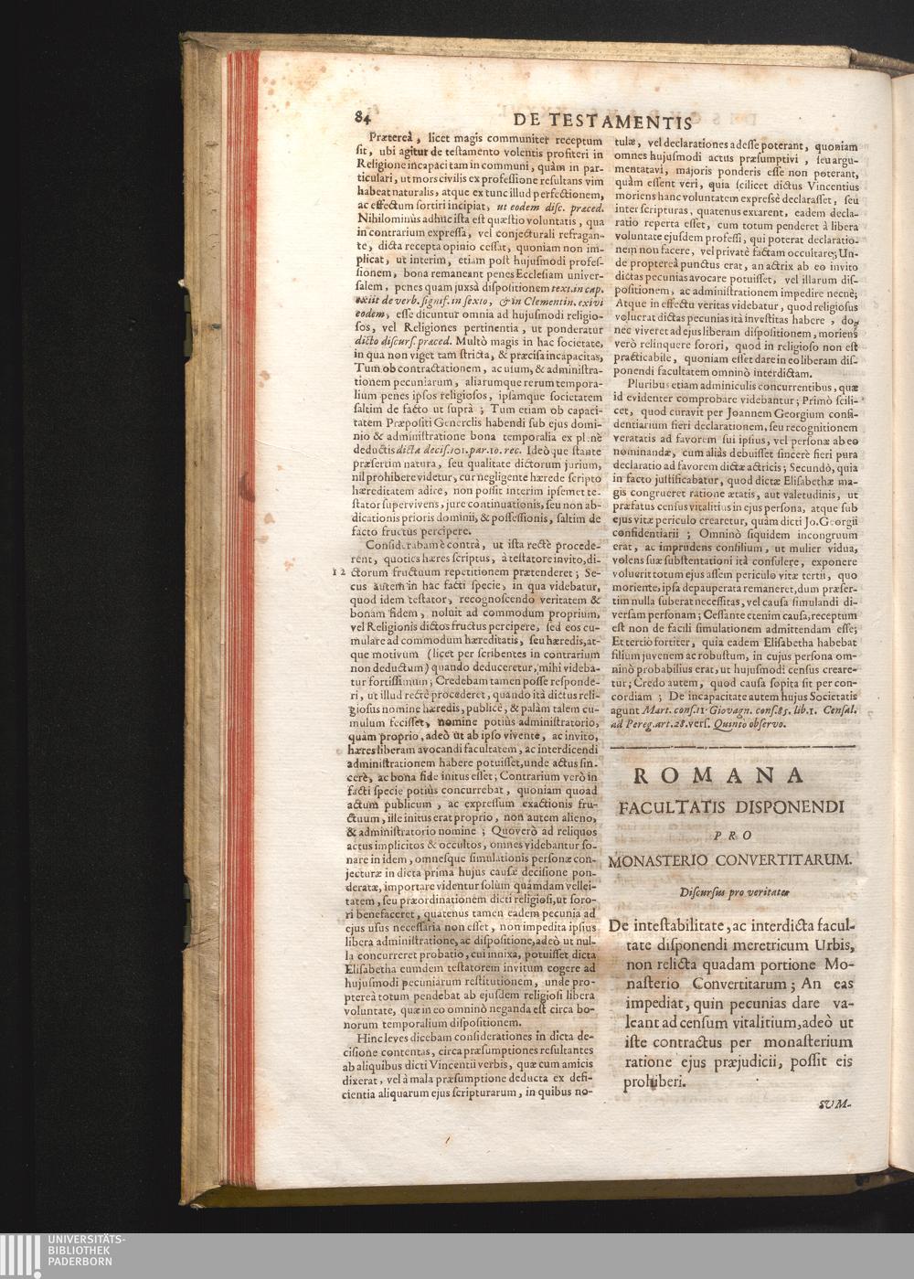 Disc . XXXVII. Romana facultas disponendi. De instabilitate, ac interdicta facultate[...]