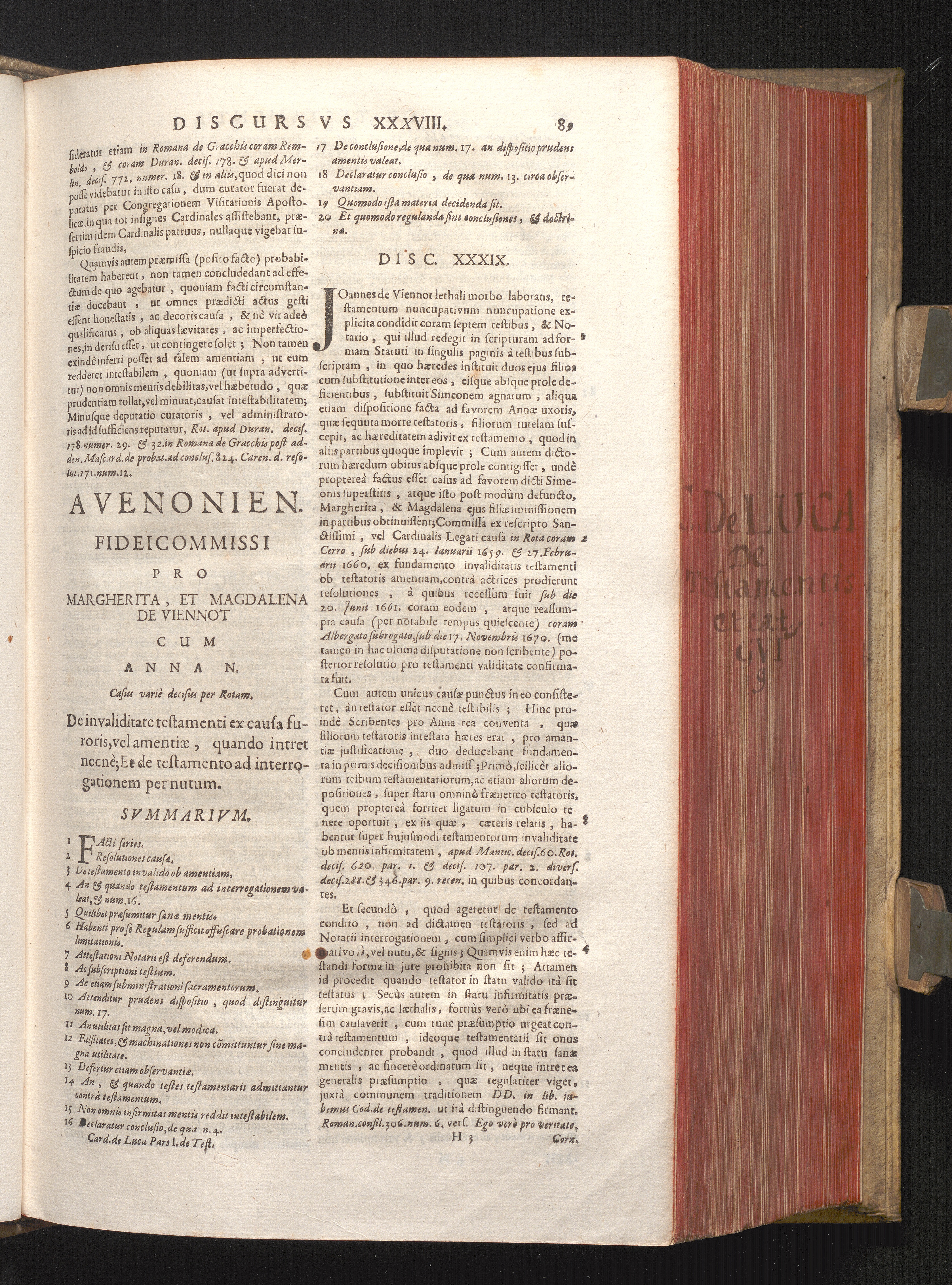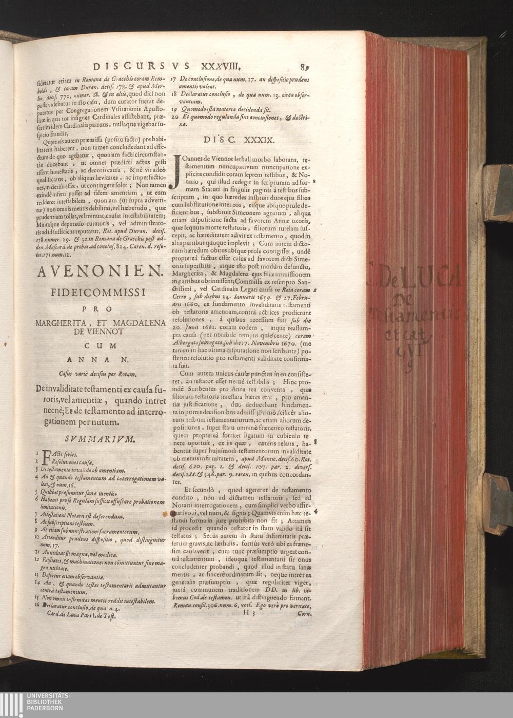 Disc. XXXIX. Avenionen. fideicommissi. De invaliditate testamenti ex causa furoris,[...]