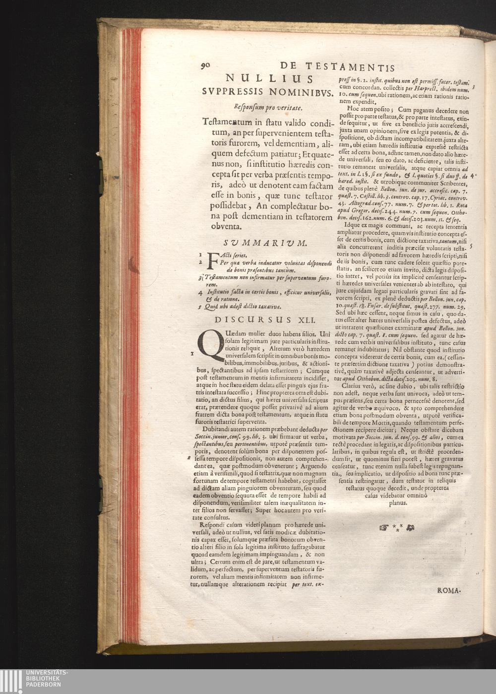 Tomus II. Tractatvs Primi (1690) Pars I. De Testamentis, Codicillis, & ultimis voluntatibus. Pars II. De Hærede, & Hæreditate. Pars III. De Legitima Trebellianica, & aliis Detractionibus
