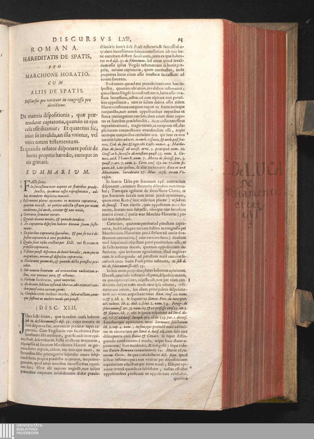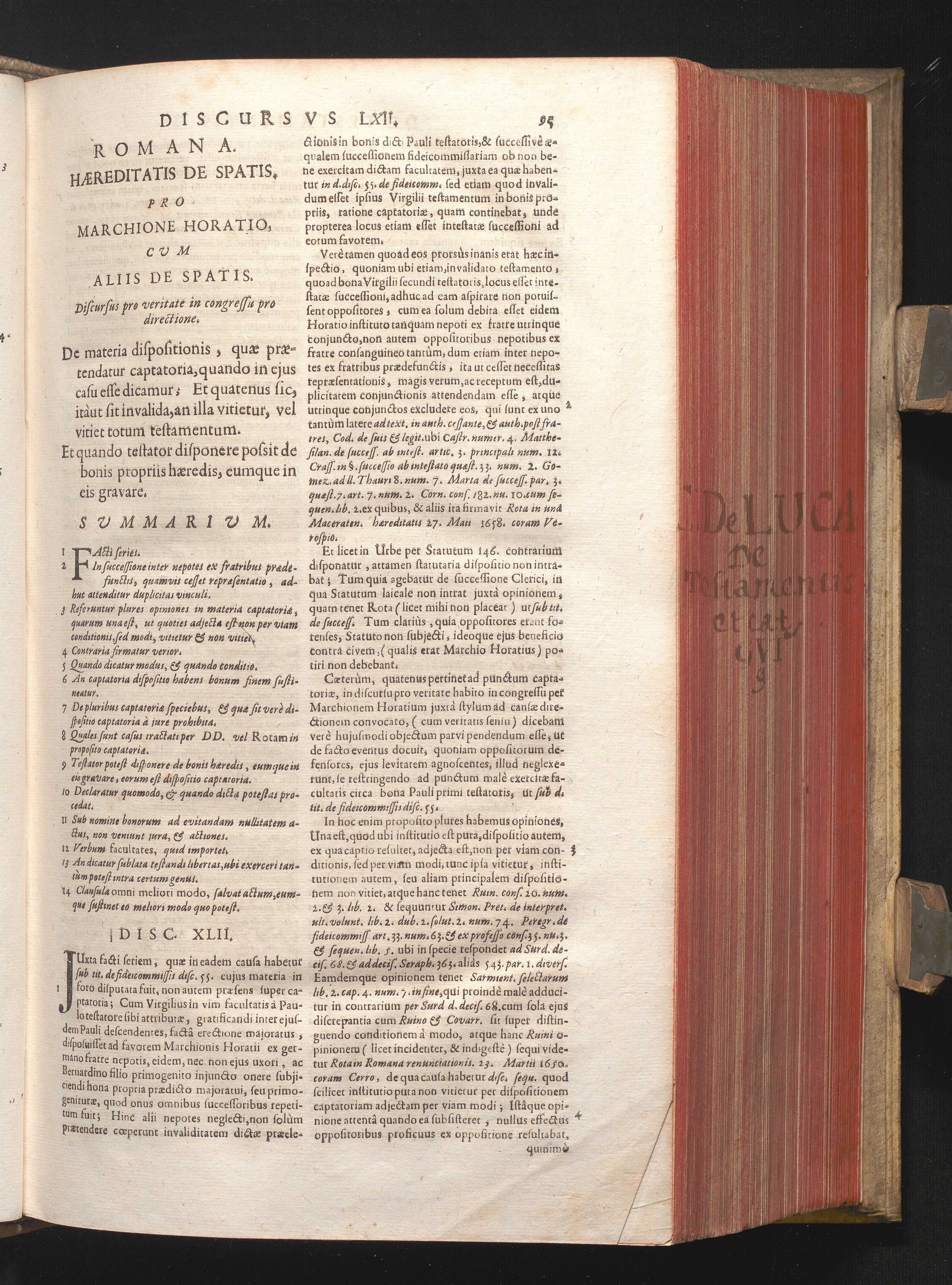 Disc. XLII. Romana hæreditatis de Spatis. De materia dispositionis, quæ prætendatur[...]