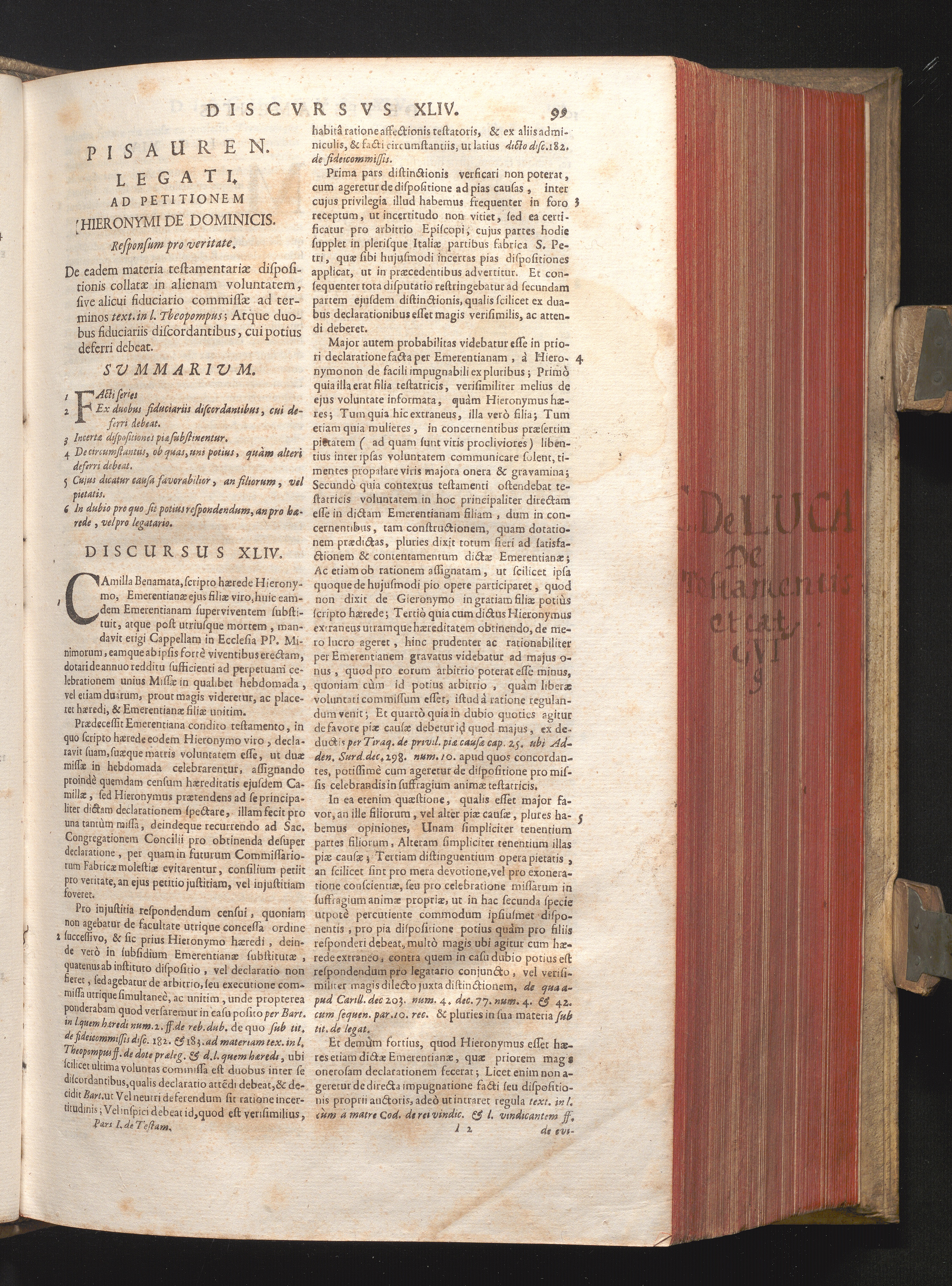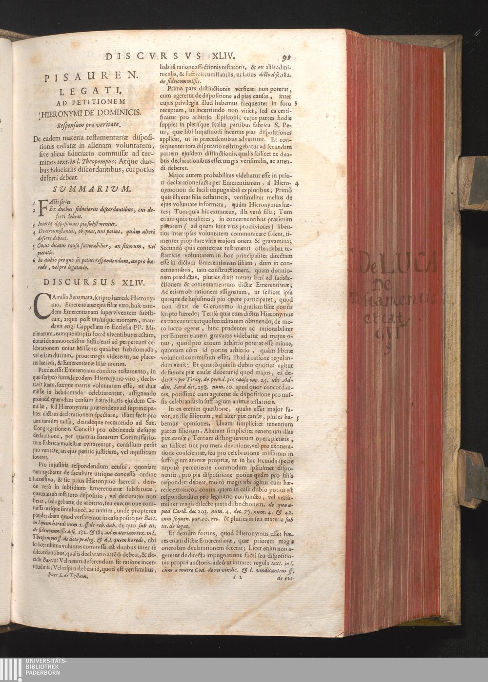 Disc. XLIV. Pisauren. legati. De testamentaria dispositione collata in alienam voluntatem,[...]