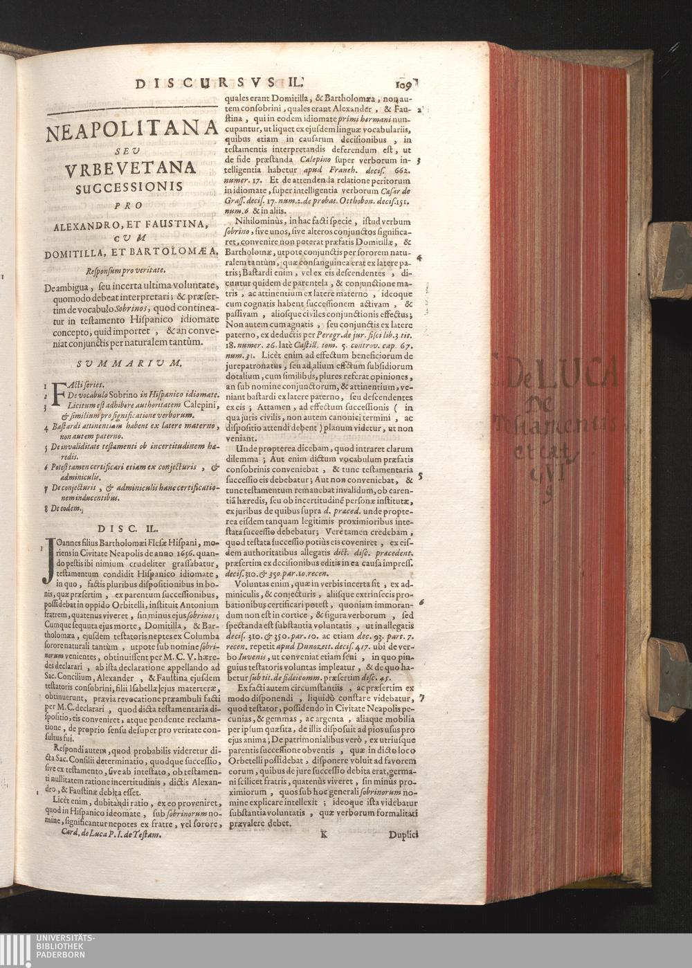 Disc. IL. Neapolitana, seù Urbevetana successionis. De ambigua, seù incerta ultima[...]