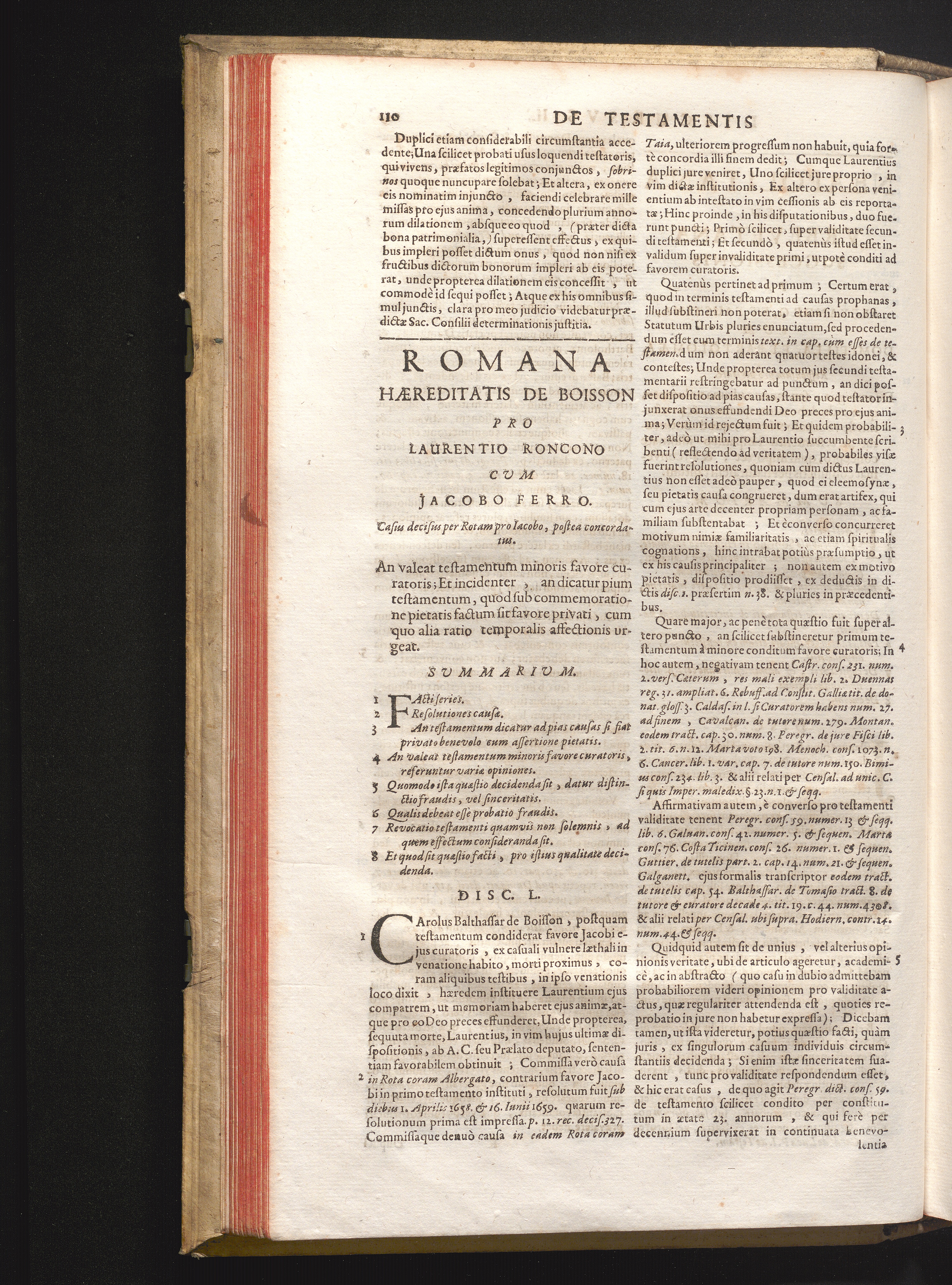 Disc. L. Romana hæreditatis de Boisson. An valeat testamentum minoris favore curatoris;[...]