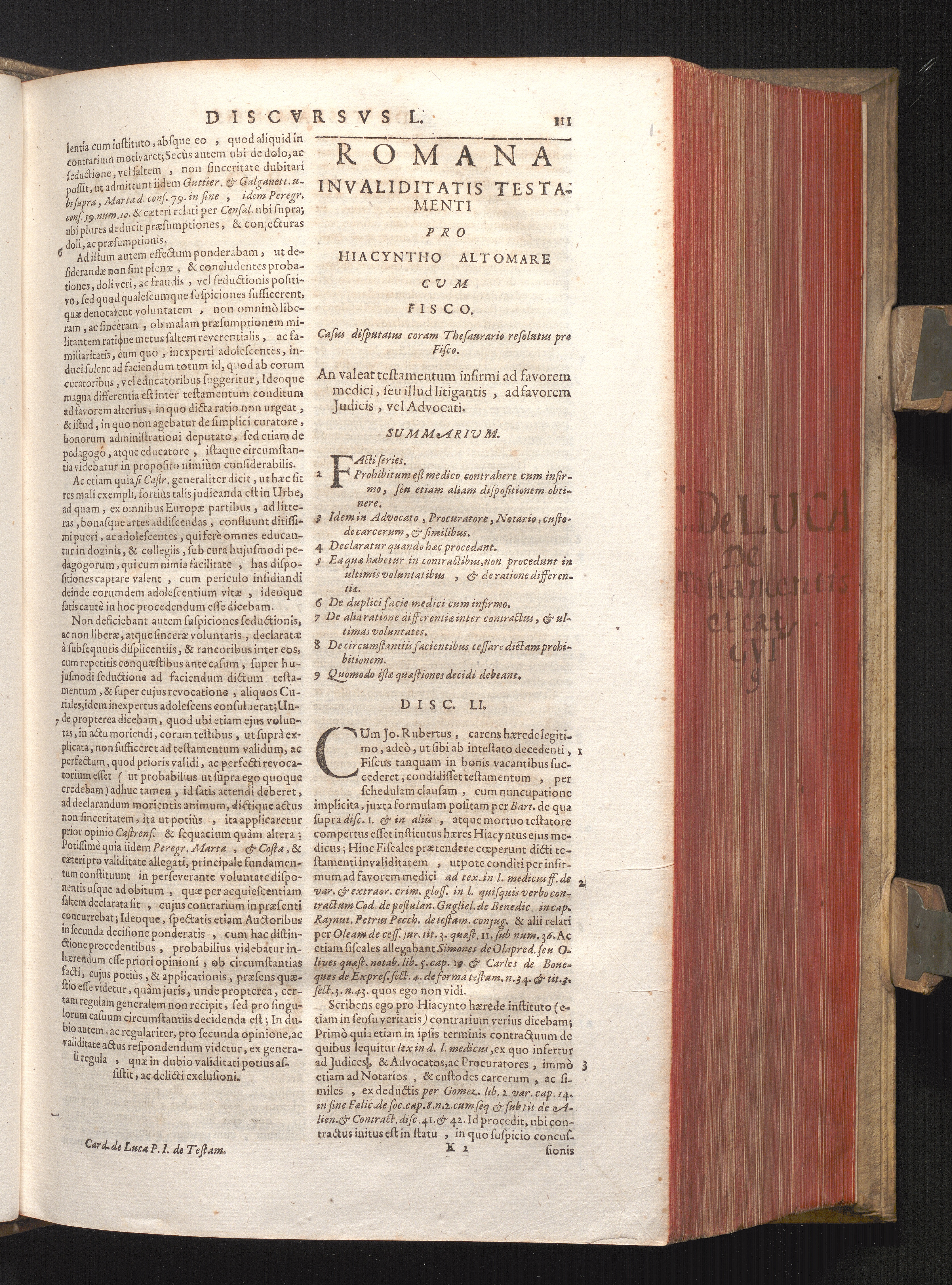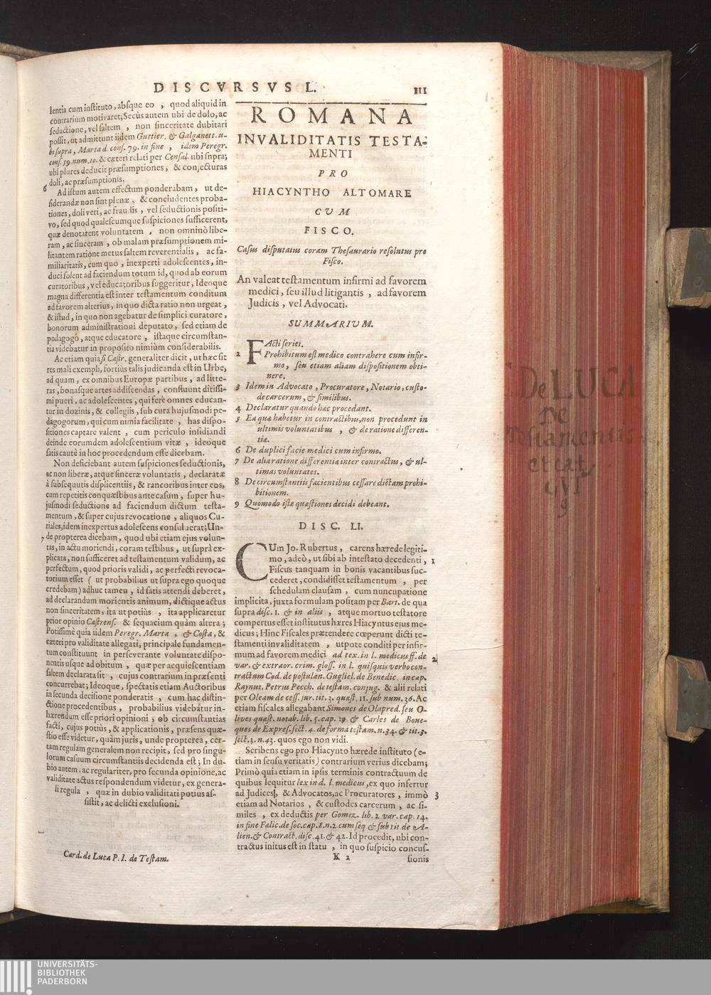 Disc. LI. Romana invaliditatis testamenti. An valeat testamentum infirmi ad favorem[...]