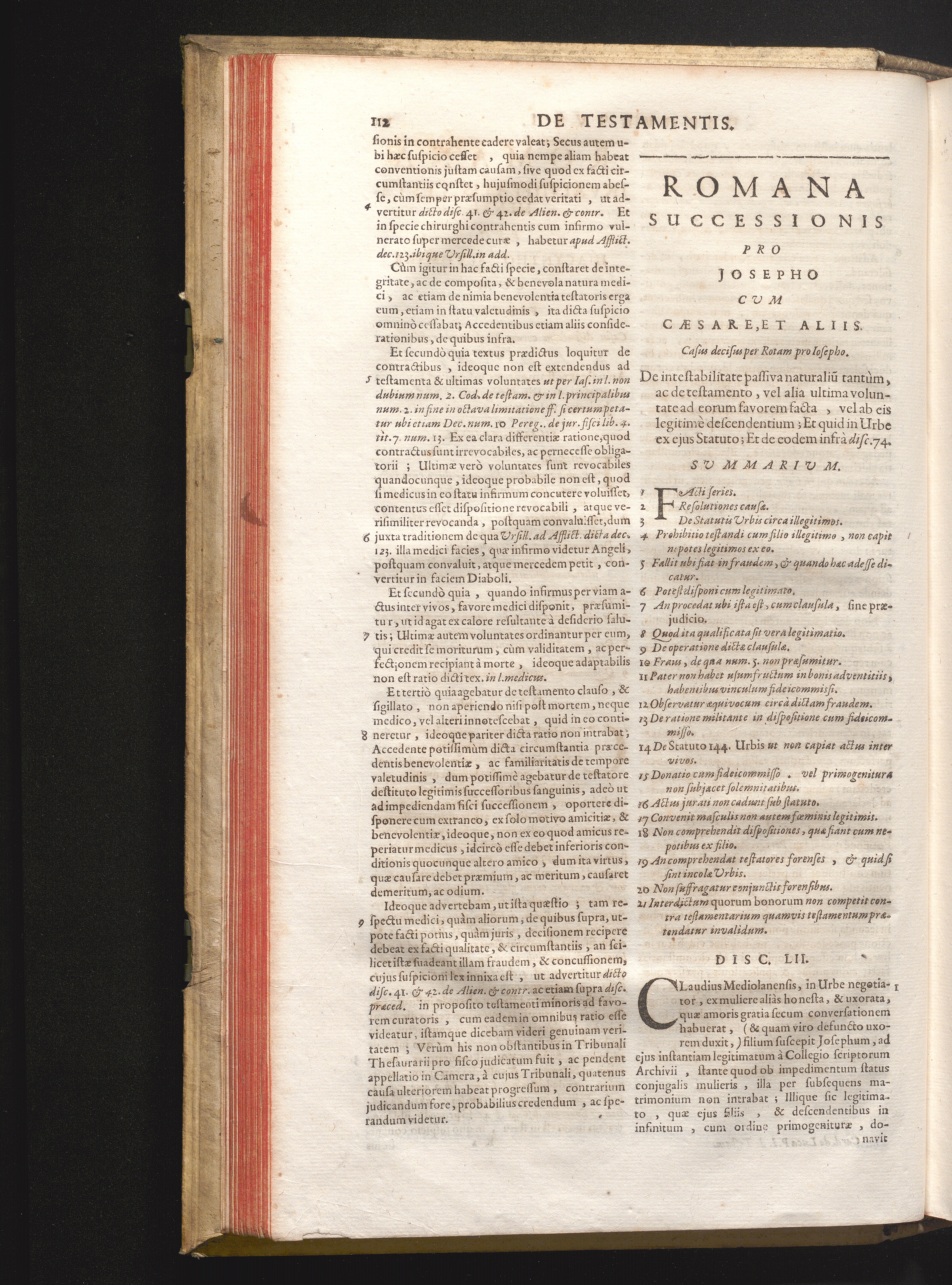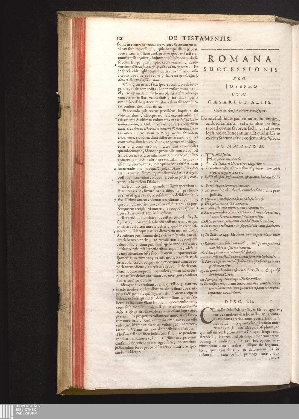 Disc. LII. Romana successionis. De intestabilitate passiva naturalium tantùm, ac[...]