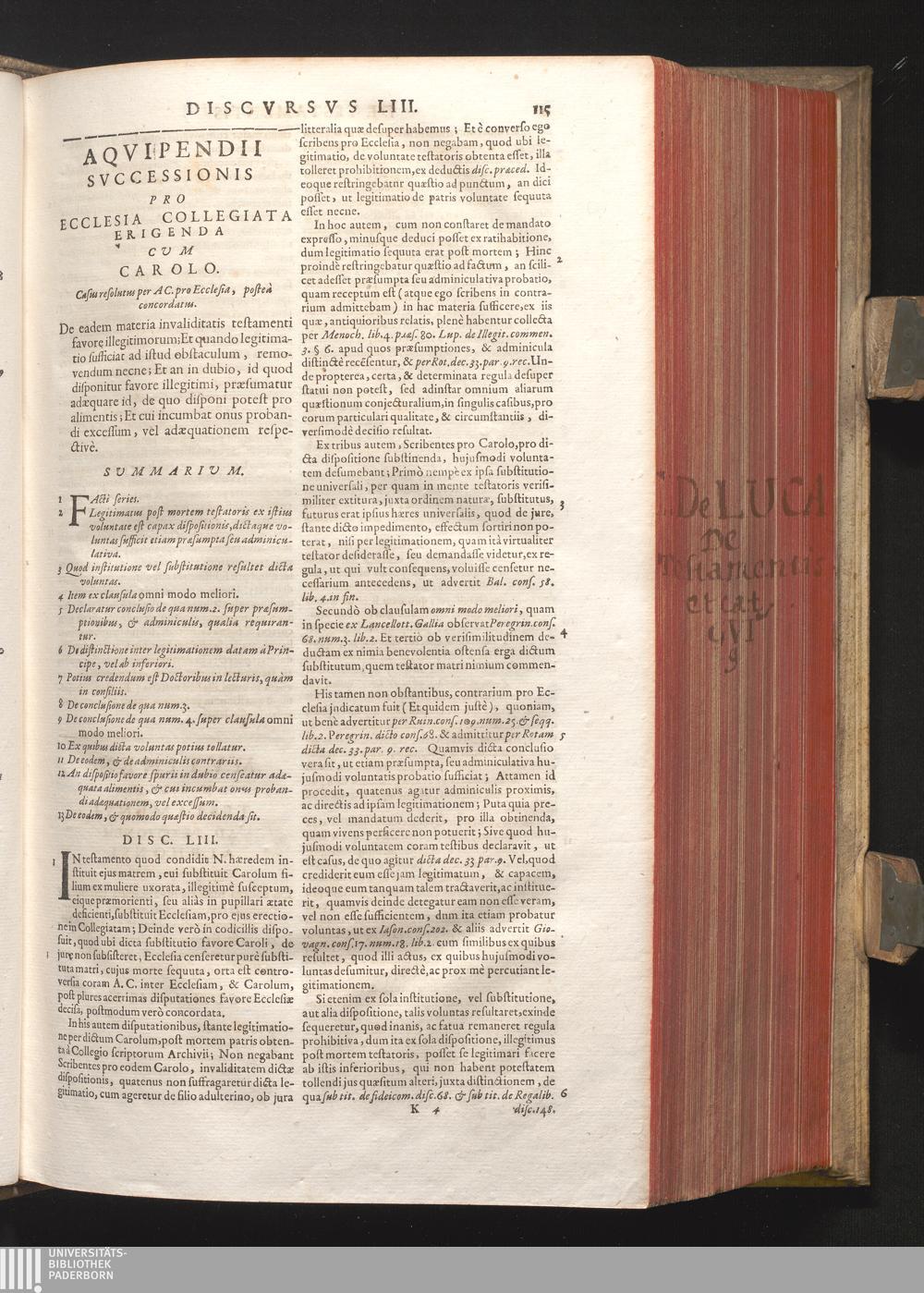Disc. LIII. Aquipendii successionis. De eadem materia invaliditatis testamenti favore[...]