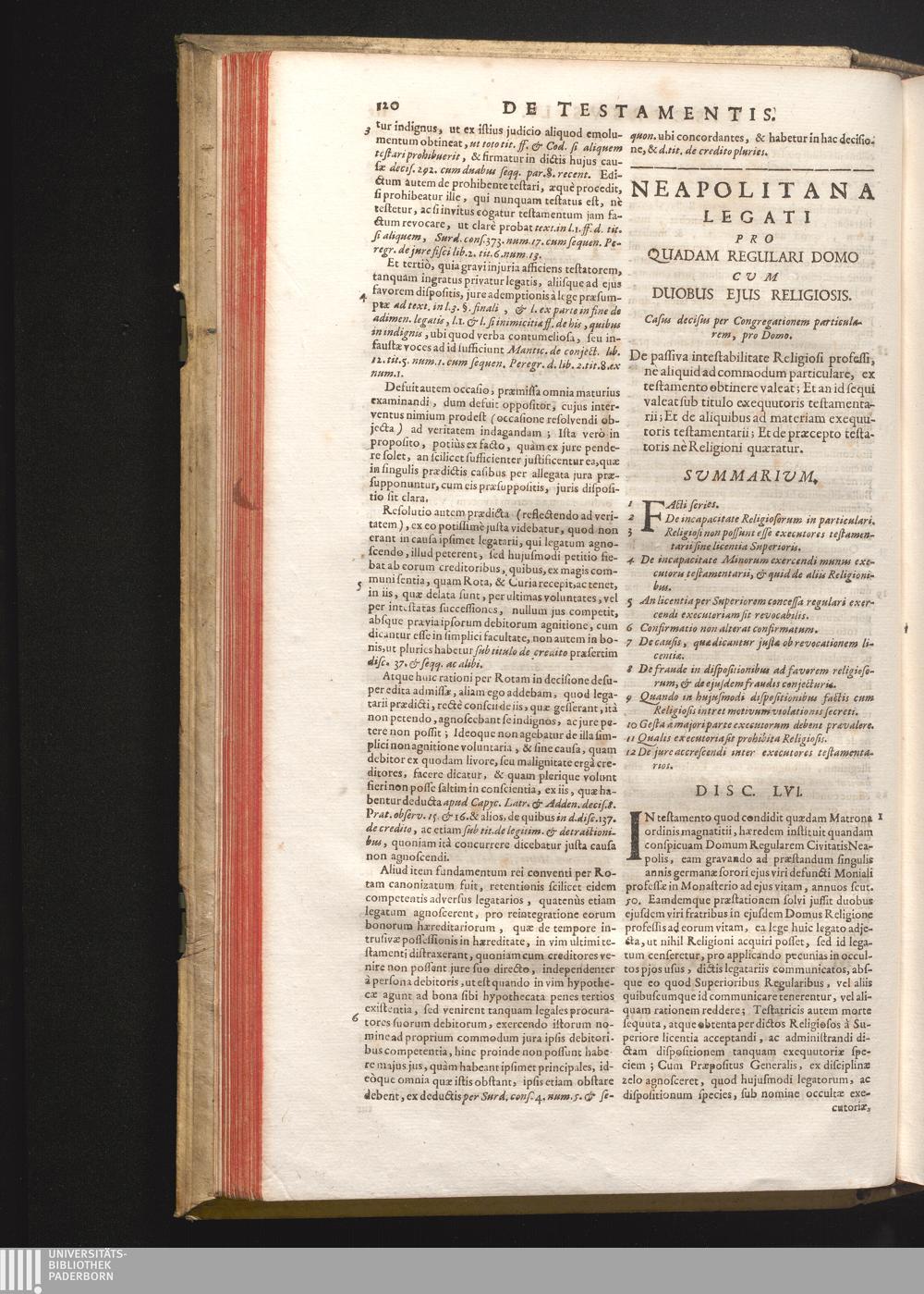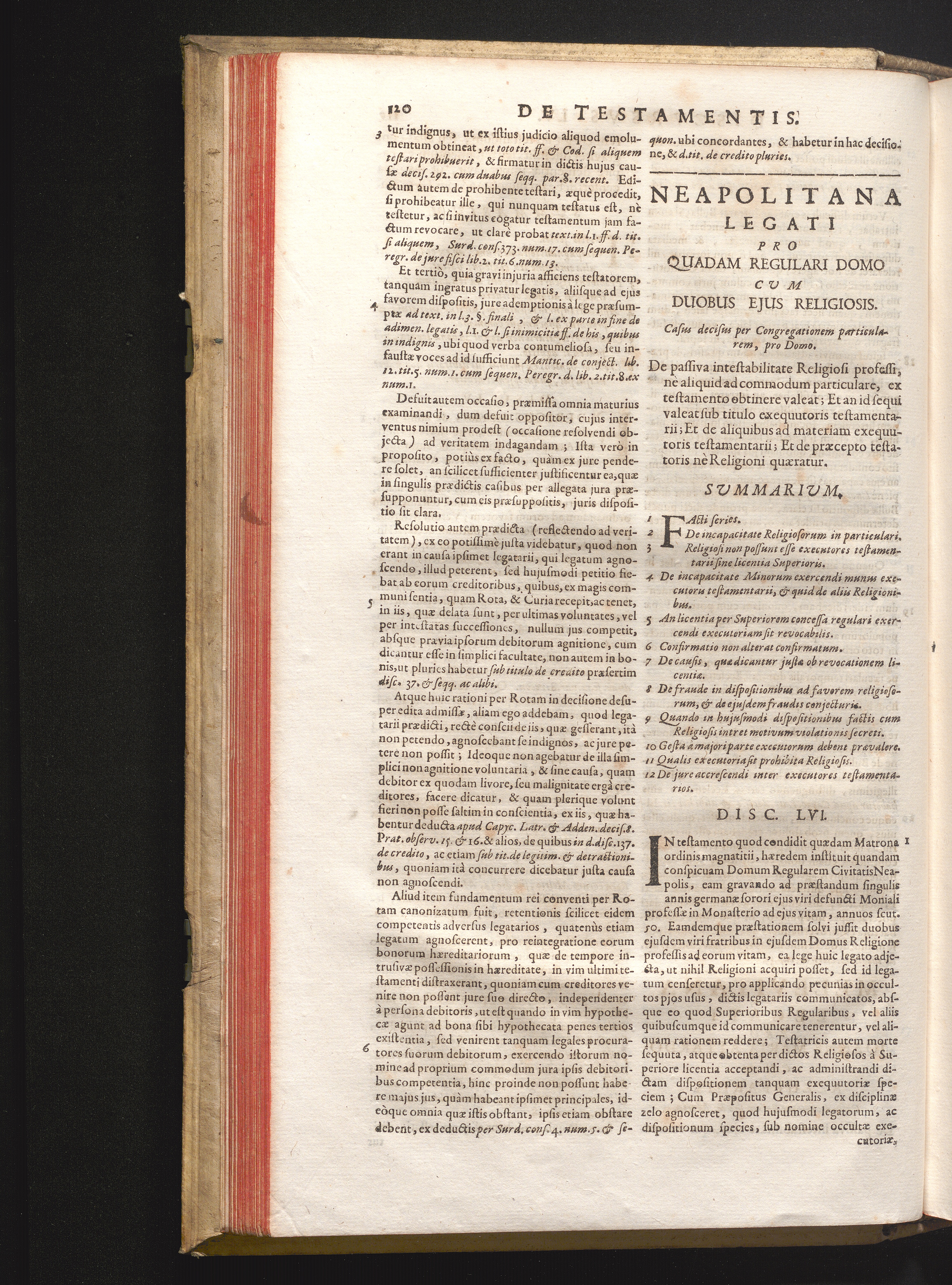 Disc. LVI. Neapolitana legati. De passiva instabilitate Religiosi professi, nè aliquid[...]