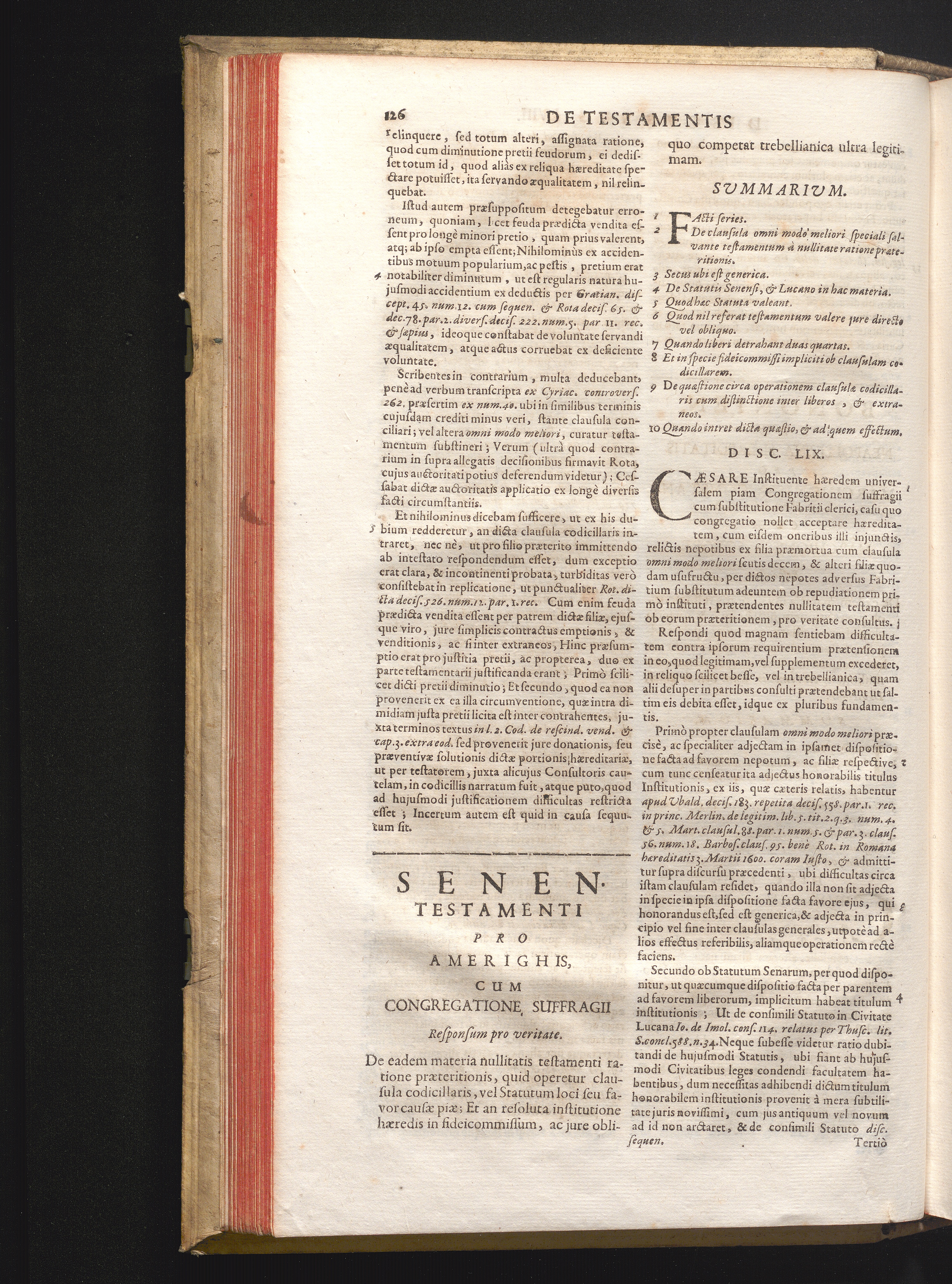 Disc. LIX. Senen. testamenti. De eadem materia nullitatis testamenti ratione præteritionis,[...]
