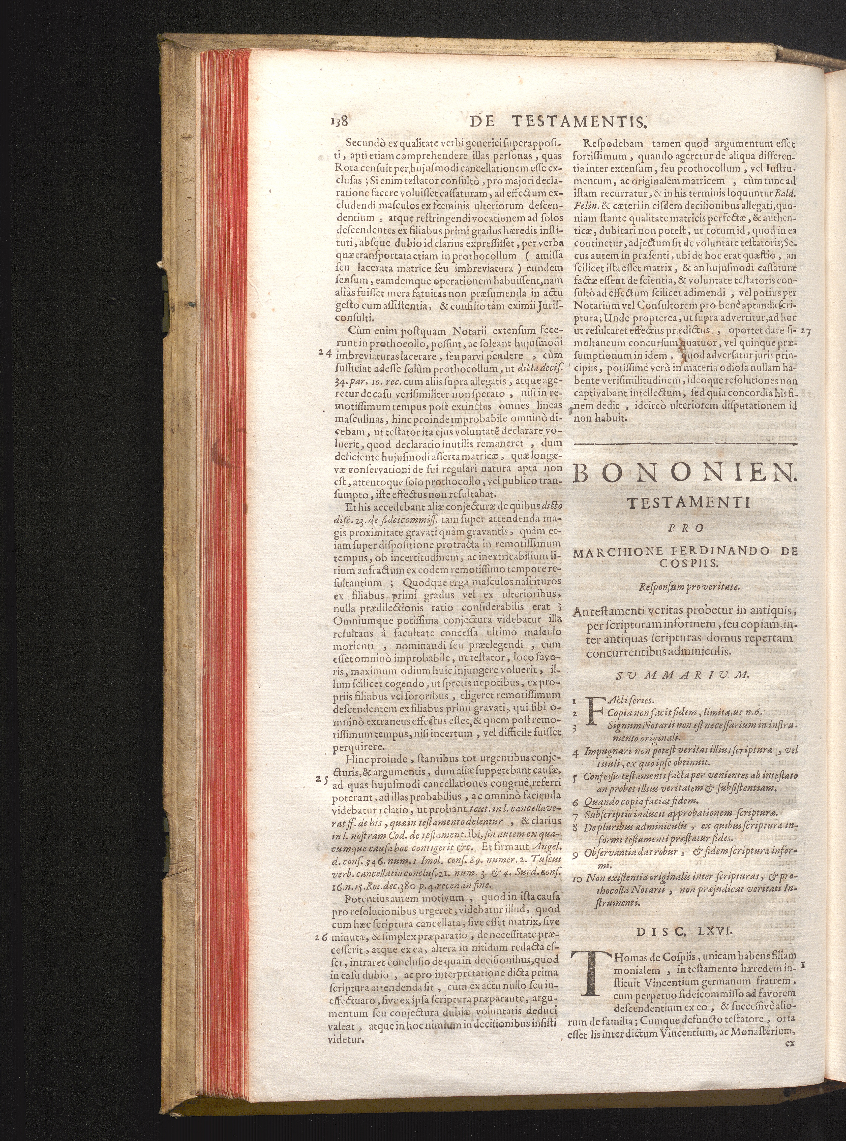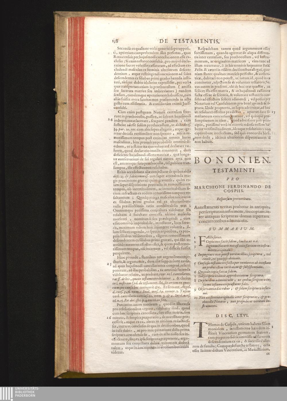 Disc. LXVI. Bononien. testamenti. An testamenti veritas probetur in antiquis, per[...]