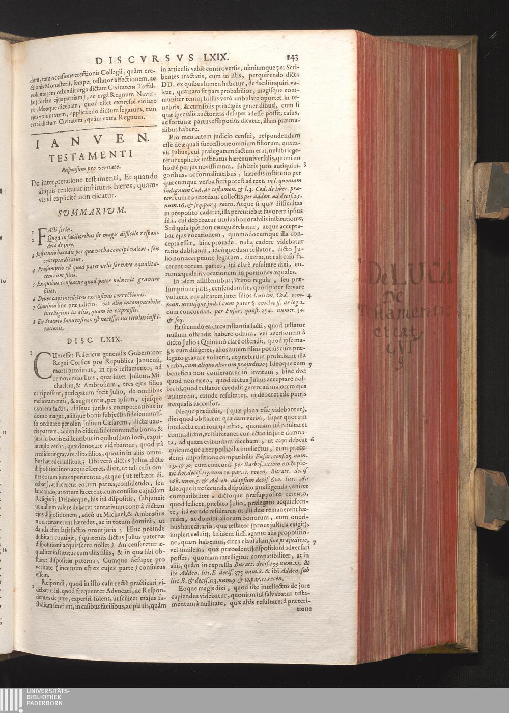 Disc. LXIX. Ianuen. testamenti. De interpretatione testamenti, Et quando aliquis[...]