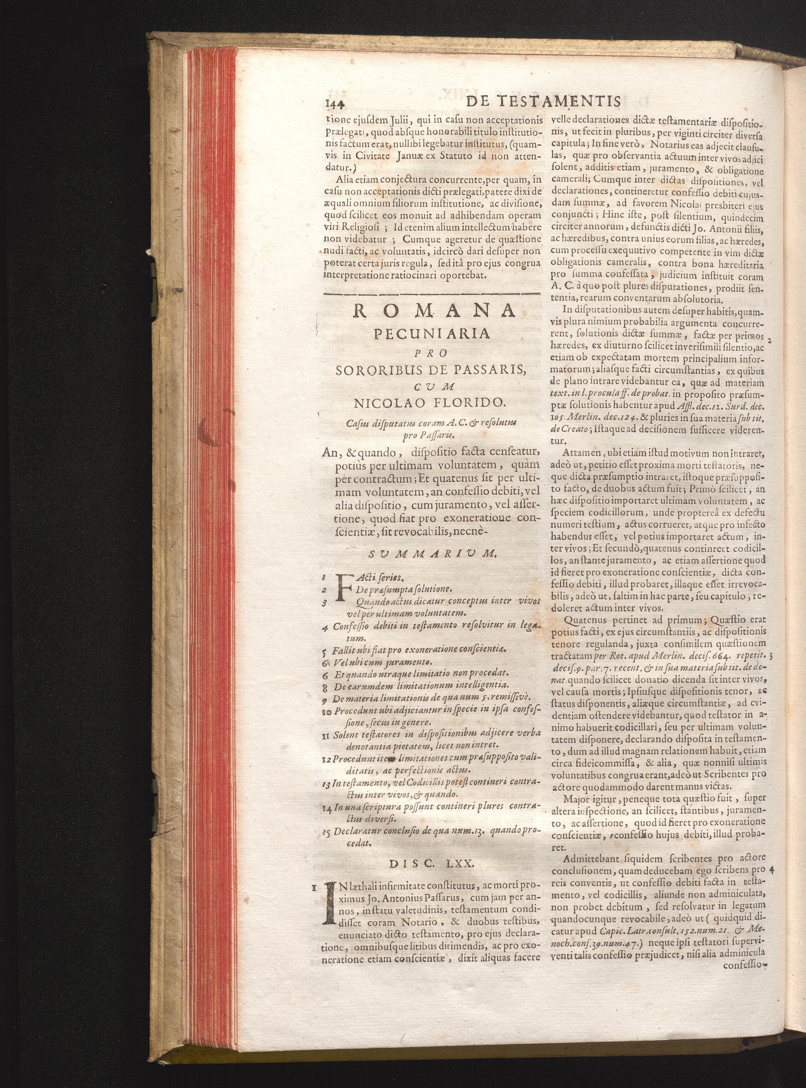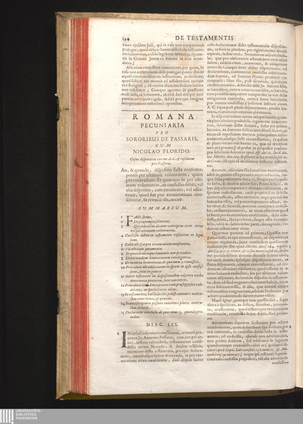 Disc. LXX. Romana pecuniaria. An, & quando, dispositio facta censeatur, potiùs per[...]