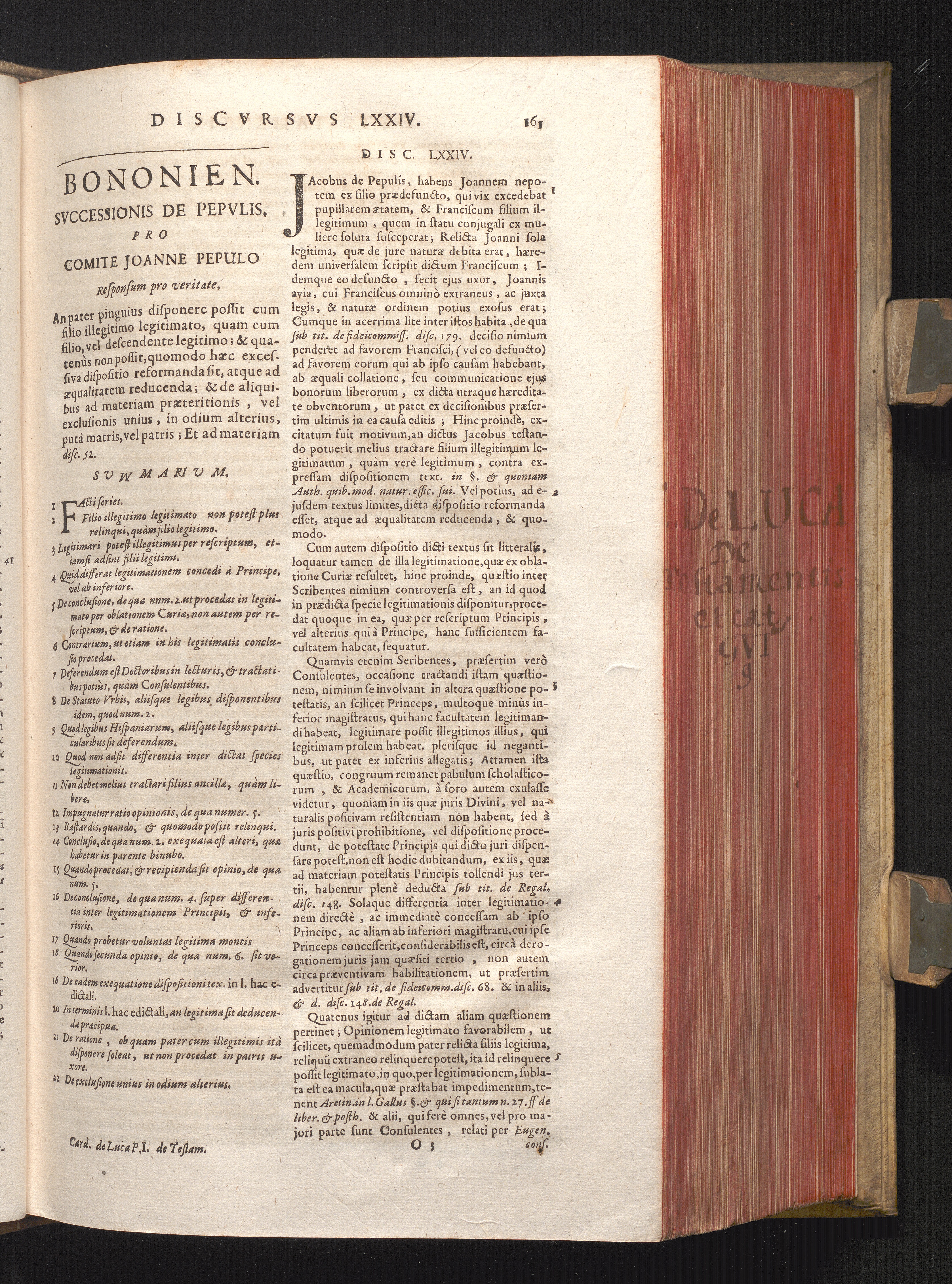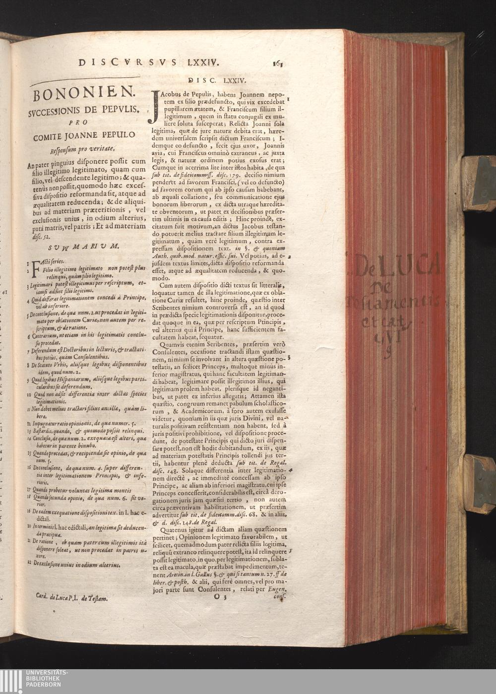 Disc. LXXIV. Bononien. successionis de Pepulis. An pater pinguius disponere possit[...]