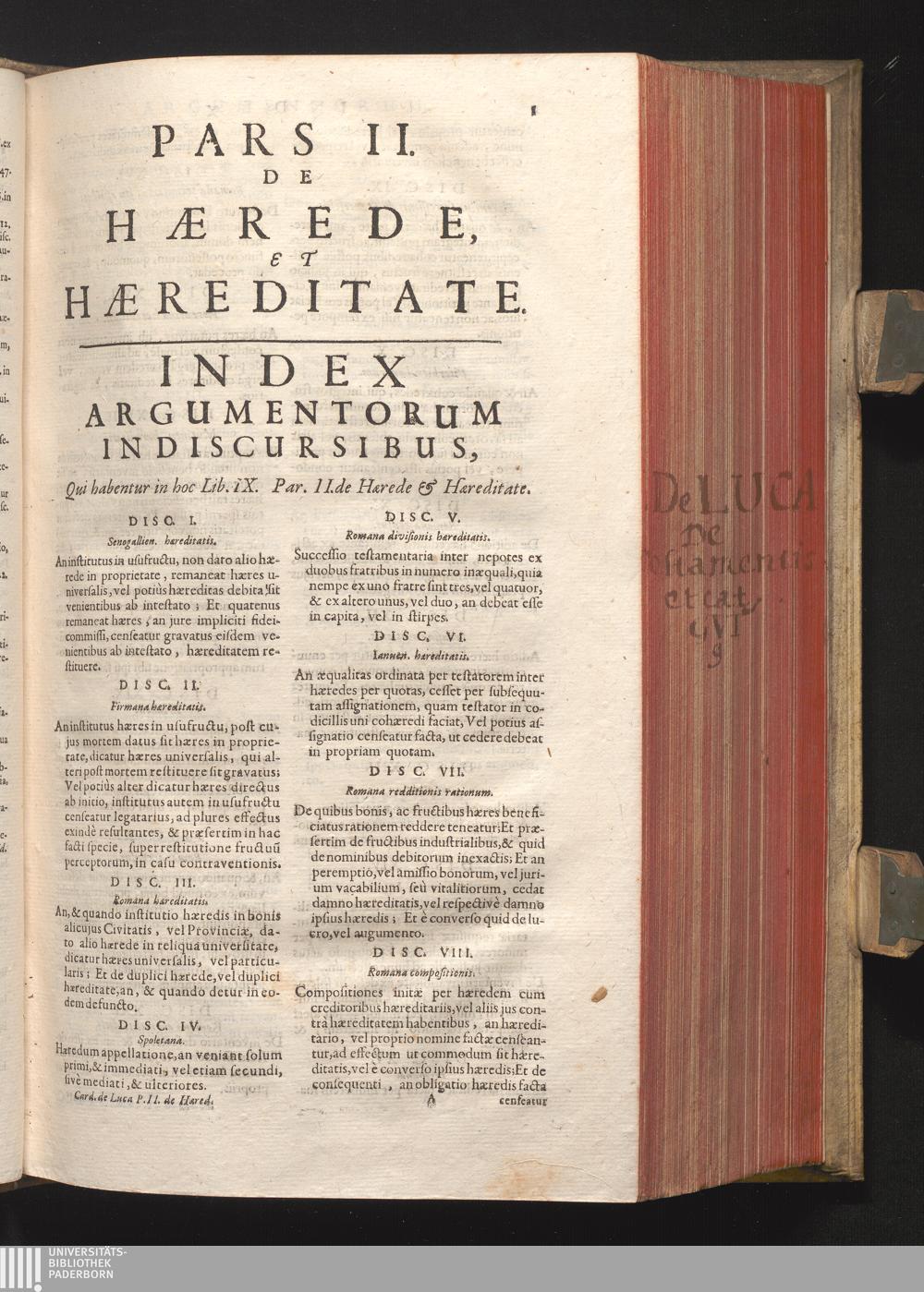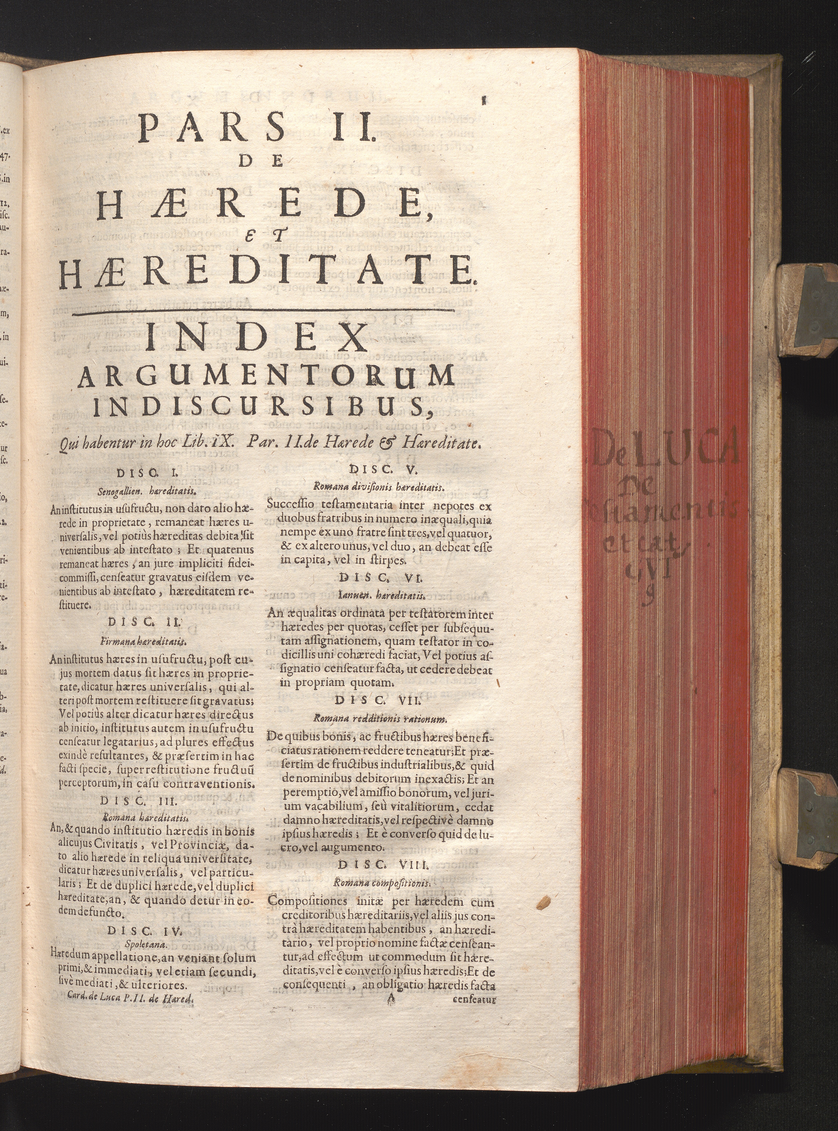 Pars II. De Hærede Et Hæreditate. Index Argumentorum In Discursibus, Qui habentur[...]
