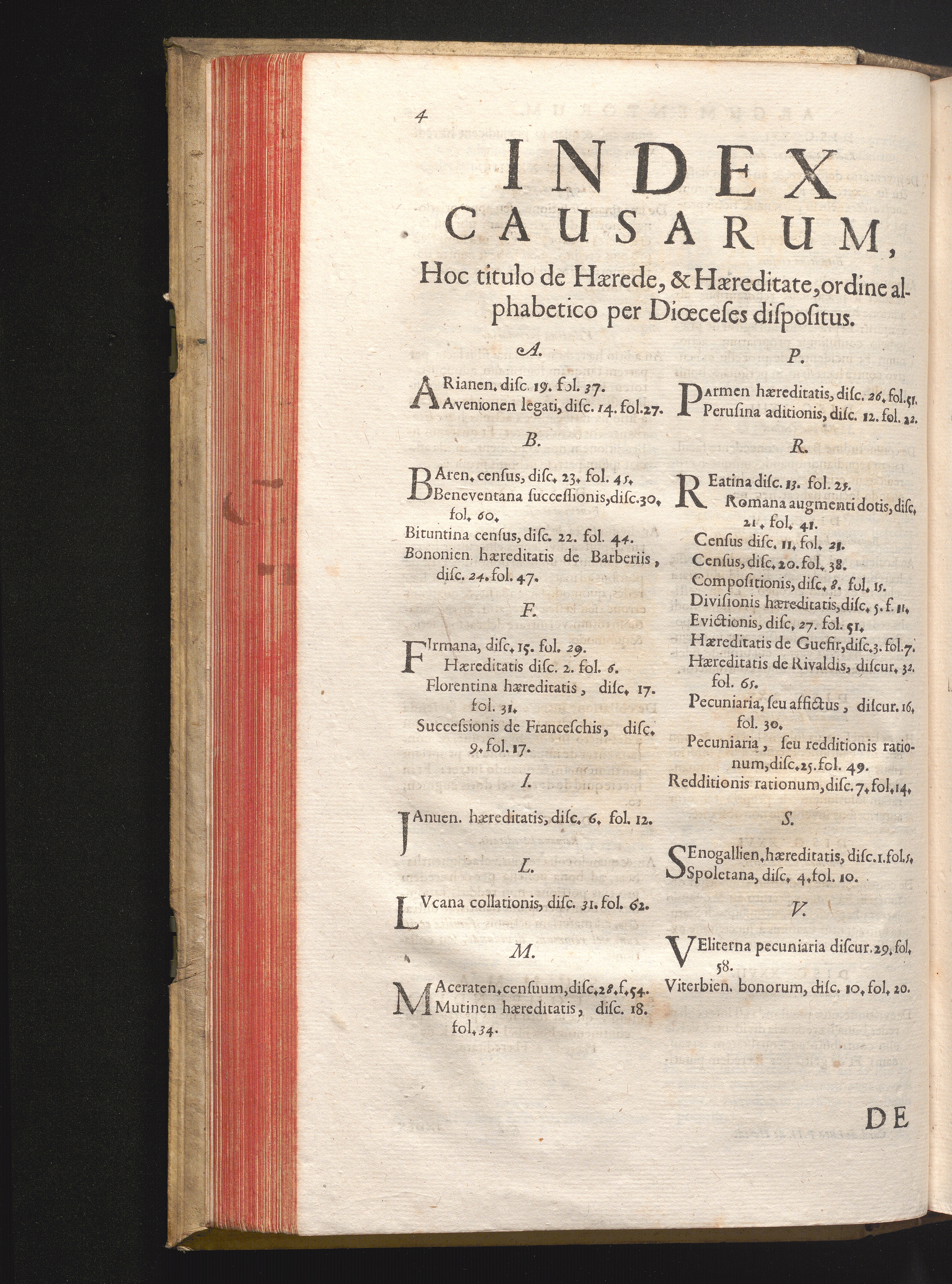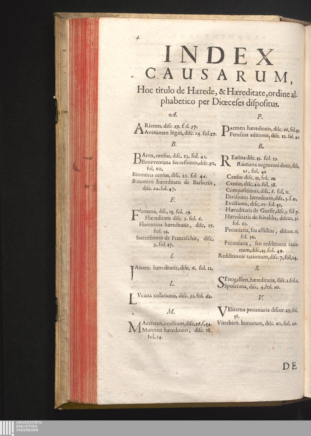 Index Causarum, Hoc titulo de Hærede, & Hæreditate, ordine alphabetico per Diœceses[...]